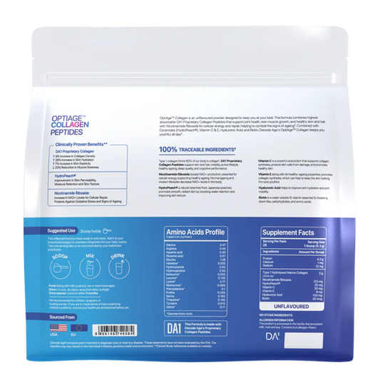 Decode Age OptiAge Collagen Supplement | Supports Hair, Skin, Bone and Joint Health | Type 1 Hydrolysed Collagen, HydroPeach, NR, Vitamin C& E, Hyaluronic Acid, Biotin | 150 gm, 28 Servings