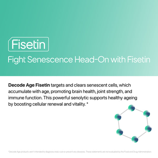 Decode Age Fisetin Supplement | Senolytic Supplement | Supports Skin & Hair Health, Cognition and Immunity | 100mg, 30 Capsules, Vegan
