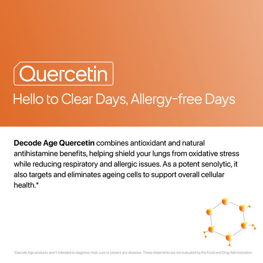 Decode Age Quercetin Supplement | Anti-Allergy Supplement | Supports Energy, Brain and Heart Health, and Immunity | 100mg, 30 Capsules, Vegan