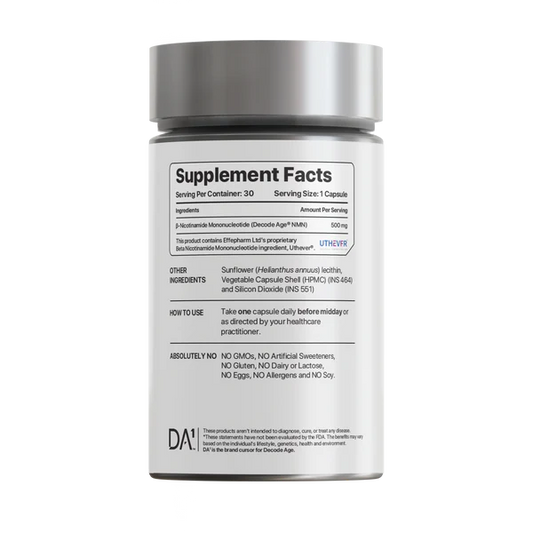 Decode Age NMN Supplement | 99.9% Pure Beta NMN | NAD+ Booster for Energy, Metabolism, Cellular Repair & Skin Health