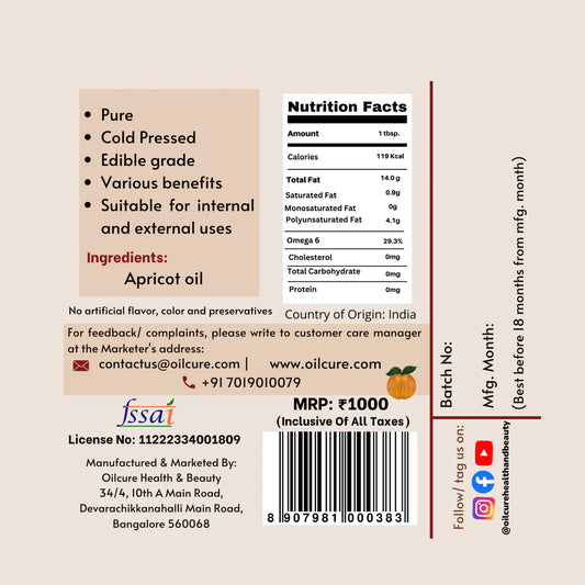 Oilcure | Apricot Oil Cold Pressed -100 ml