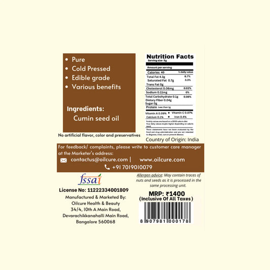 Oilcure | Cumin (Jeera) Oil Cold Pressed- 100 ml