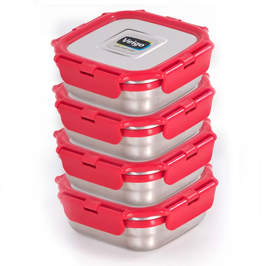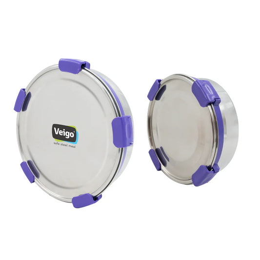 Veigo's Maxosteel Round Storage Boxes with reversible clip mechanism- Set of 3 lunch boxes containers