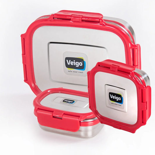 Veigo Celebration- Set of 3 Stainless Steel Leakproof Lunch Boxes(Ready-to-Gift Pack)
