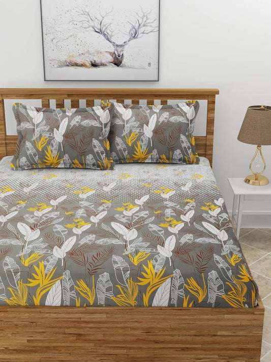 Premium Glace Cotton Elastic Fitted Double Bedsheet with 2 Pillow Covers (72x78x8 Inches)- CharcoalPankhMor