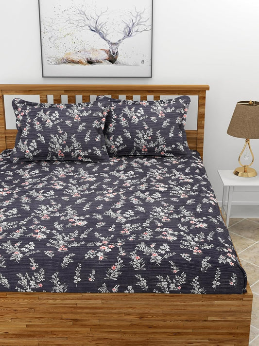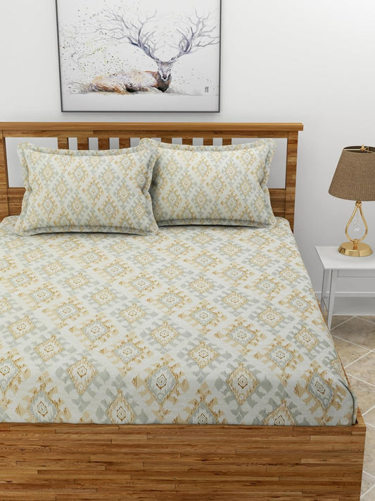 Premium Glace Cotton Elastic Fitted Double Bedsheet with 2 Pillow Covers (72x78x8 Inches)- FlenoPrint