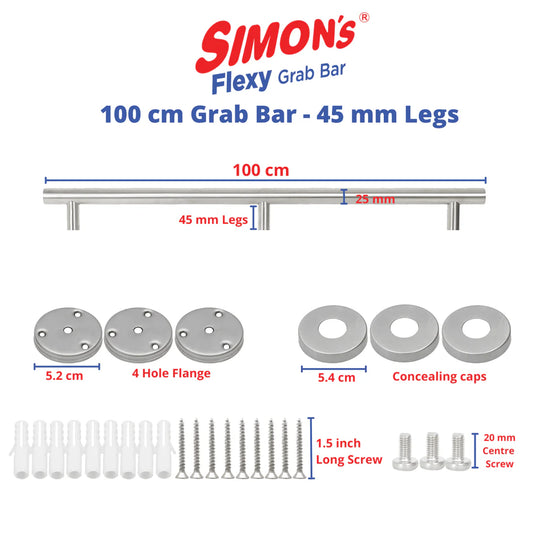Simon's Flexy 304 Stainless Steel Grab bar for Bathroom and Toilet Safety Handle of Elderly People - (75cm – 100cm)