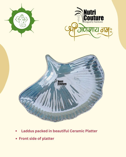 Nutri Couture Dates & Dryfruit Laddus Platter (8 pcs) – Healthy Festive Gift | No Sugar | Diabetic-Friendly | Premium Ceramic Platter
