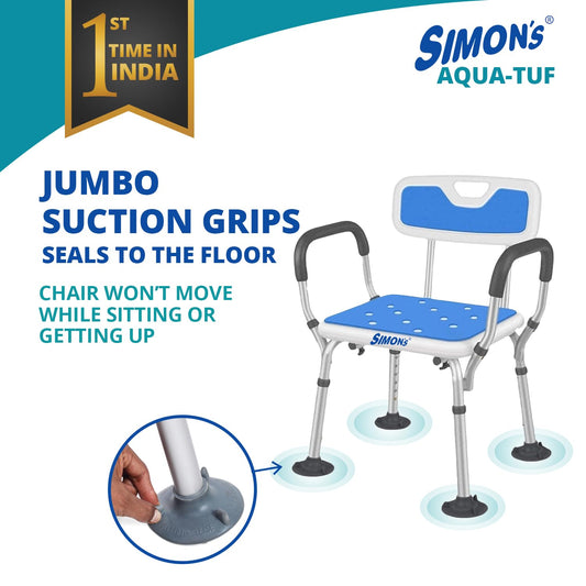 Simon's Aqua-TUF Heavy-Duty Shower Chair for Elderly | Adjustable Shower Bench with Arms | Tool-Free Assembly