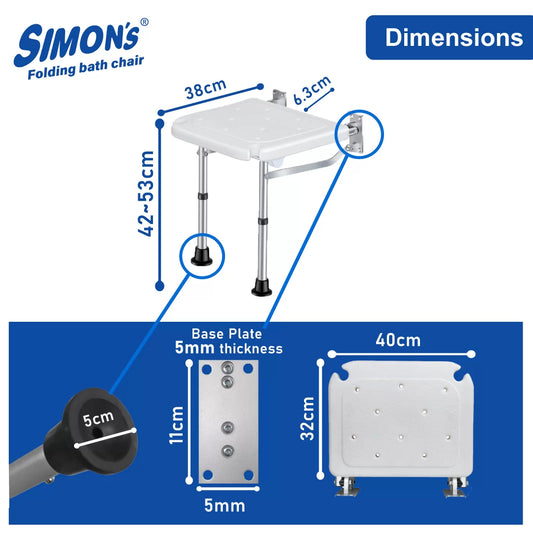 Simon’s Folding Wall Bath Chair with Adjustable Legs for Elderly to sit and take Bath in Bathroom, Shower Bench for Senior Citizens and Disabled