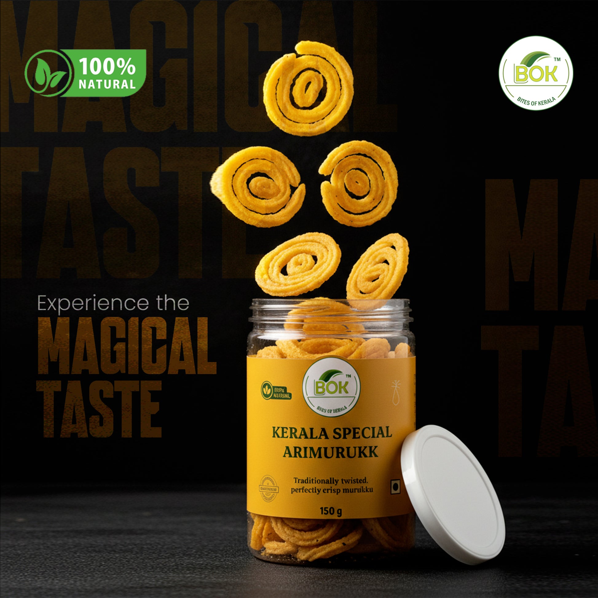 A crunchy, traditional snack straight from Kerala’s kitchens! Arimurukk is a classic South Indian delicacy made from rice flour and seasoned with a blend of spices, then deep-fried to golden perfection. Light, crispy, and irresistibly tasty, it’s the perfect tea-time companion.
