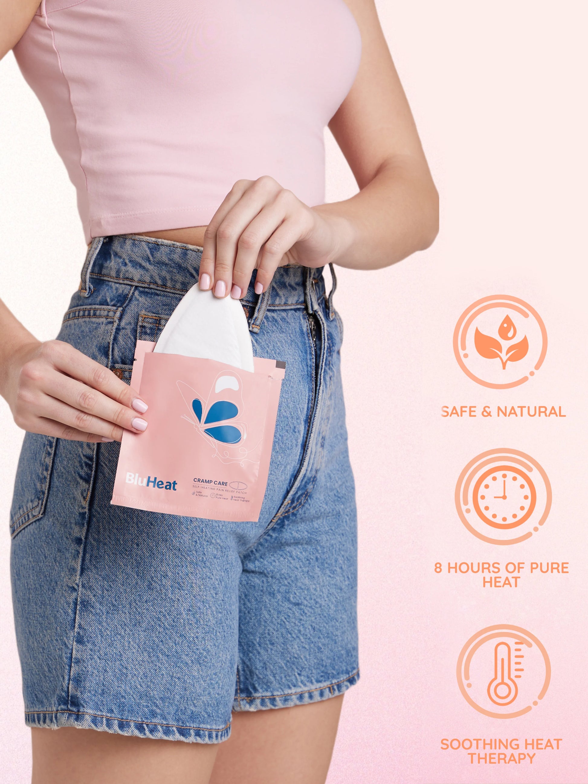 BluHeat Cramp Care provides soothing warmth anytime, anywhere—serving as a convenient, portable alternative to the traditional hot water bag. Each patch delivers continuous comfort for 8+ hours, making period care simple and hassle-free.