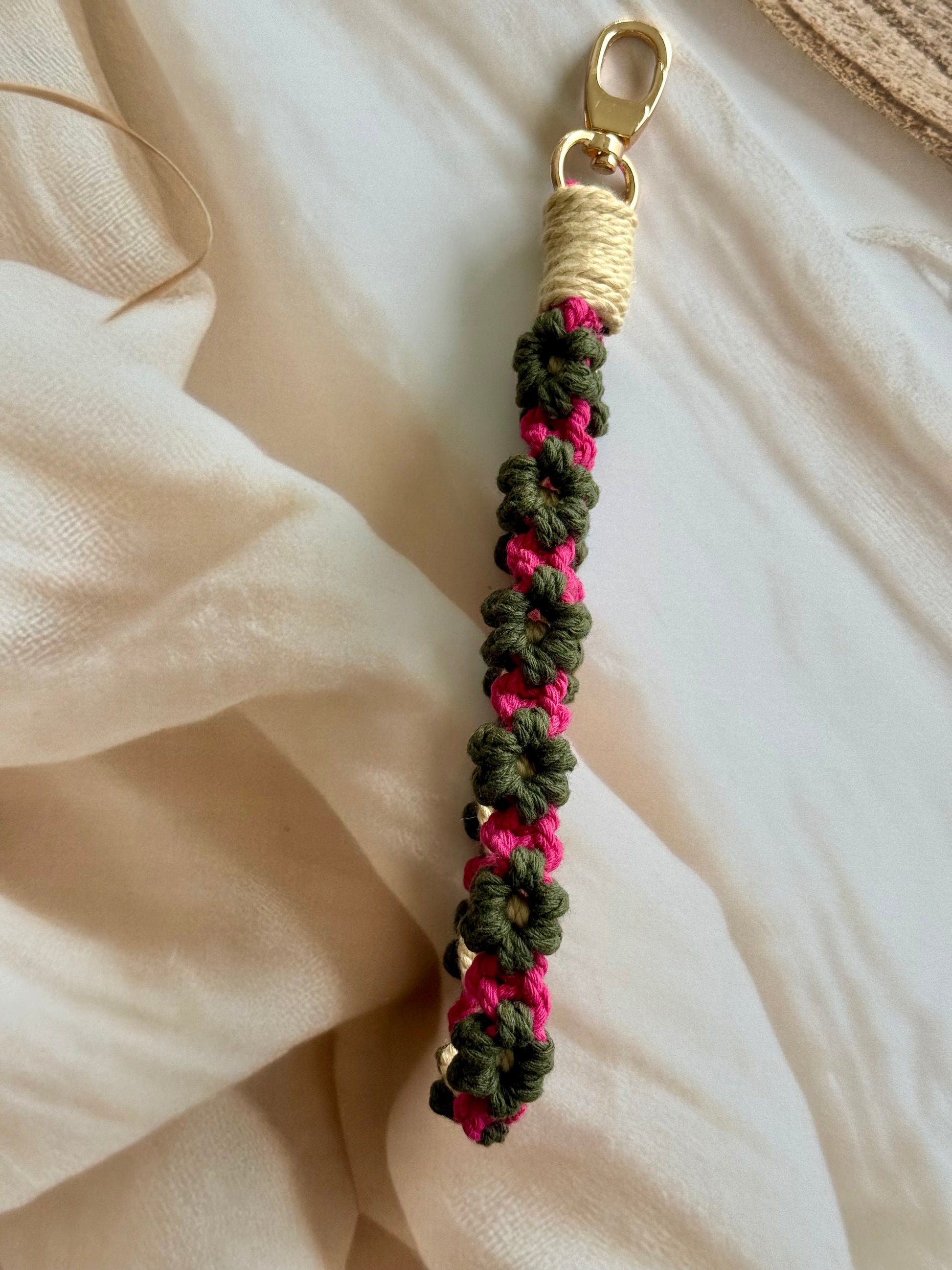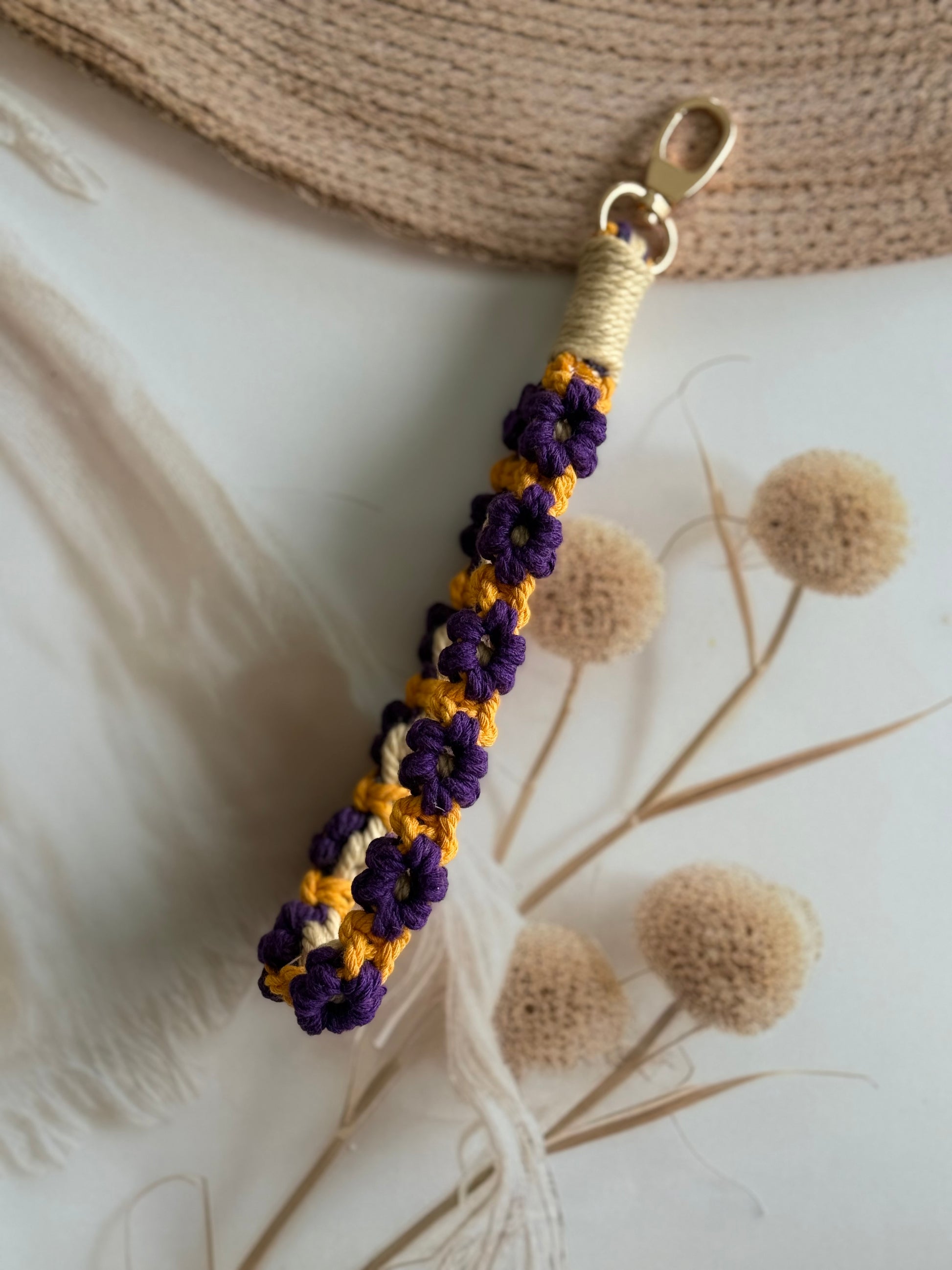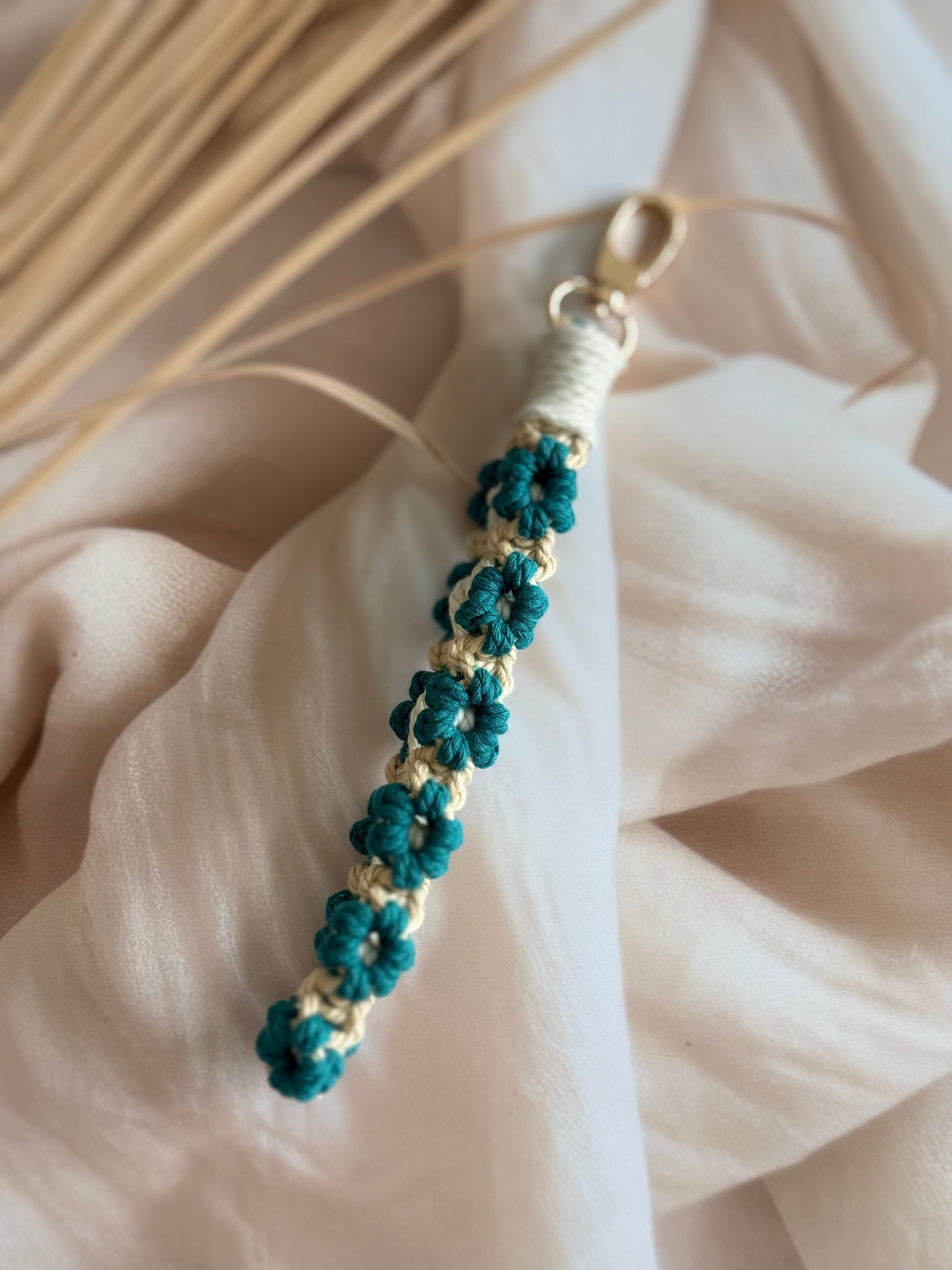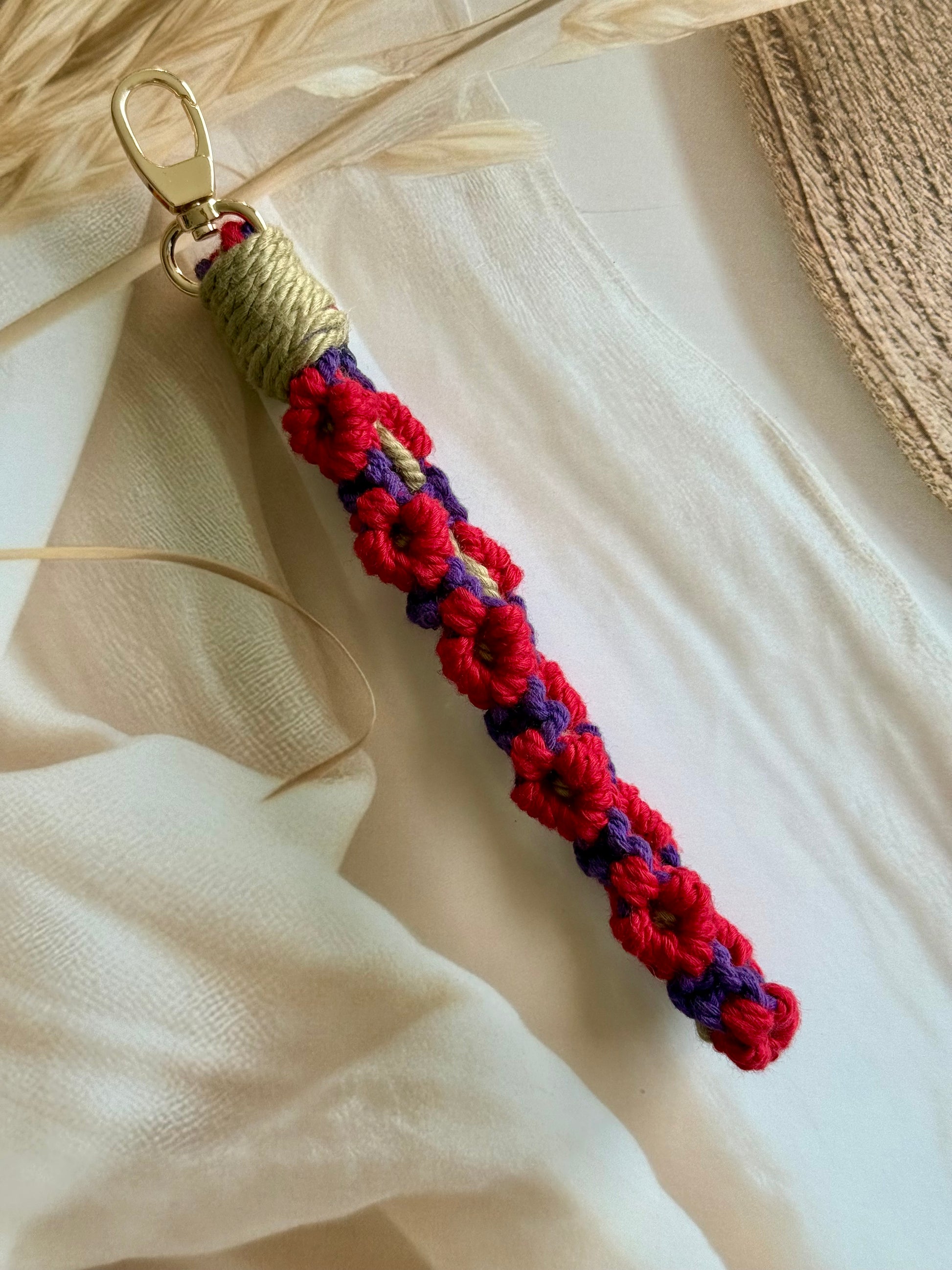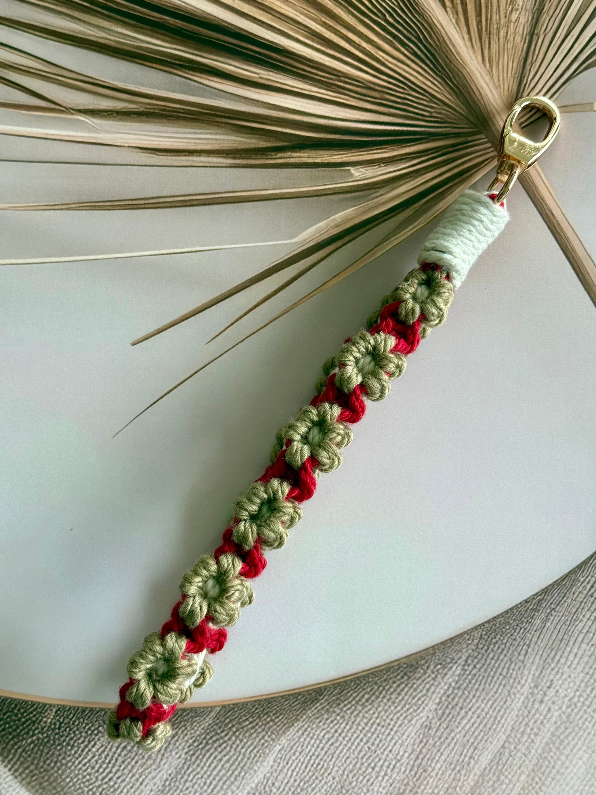 • Handcrafted wristlet made with detailed threadwork