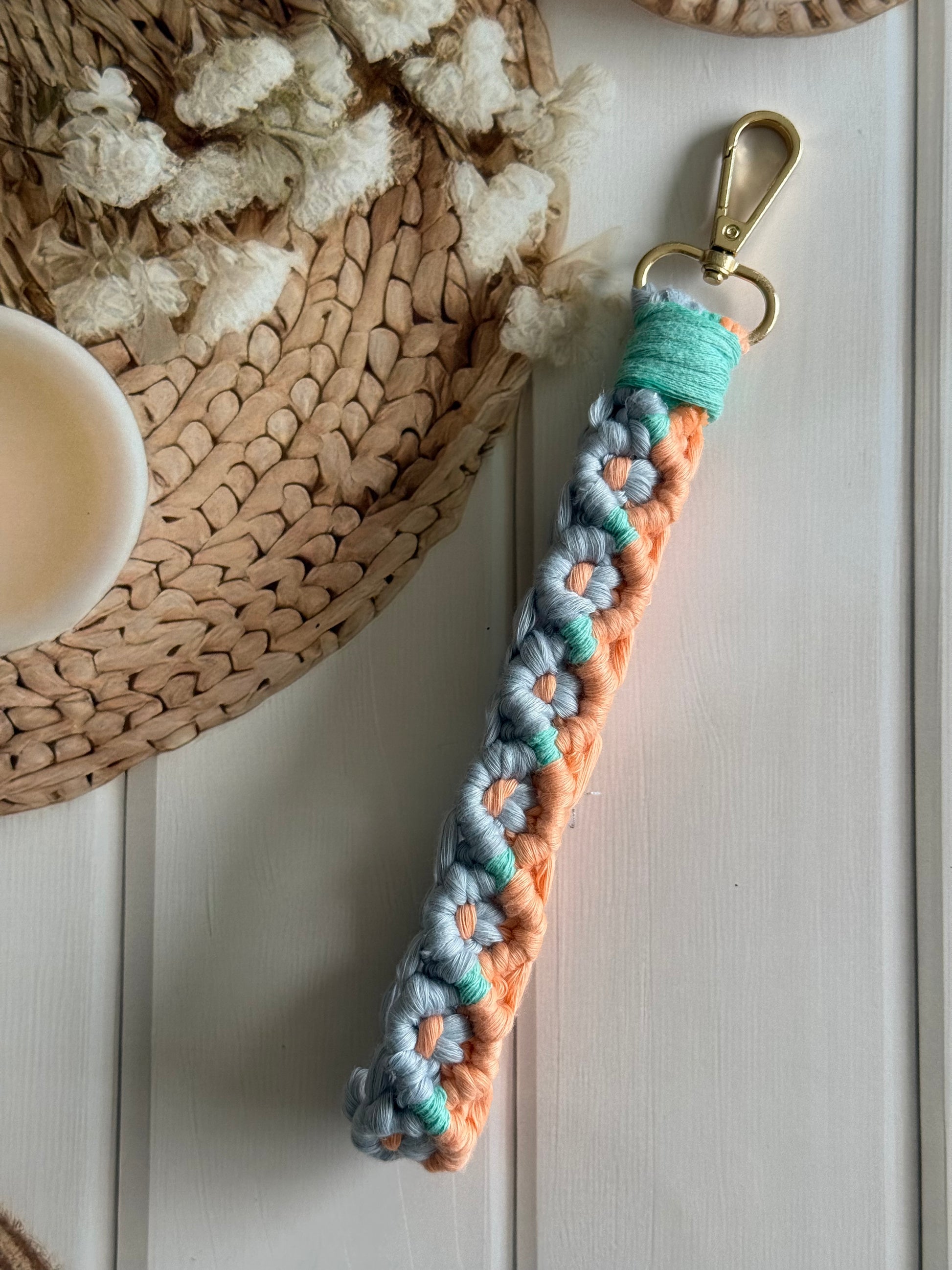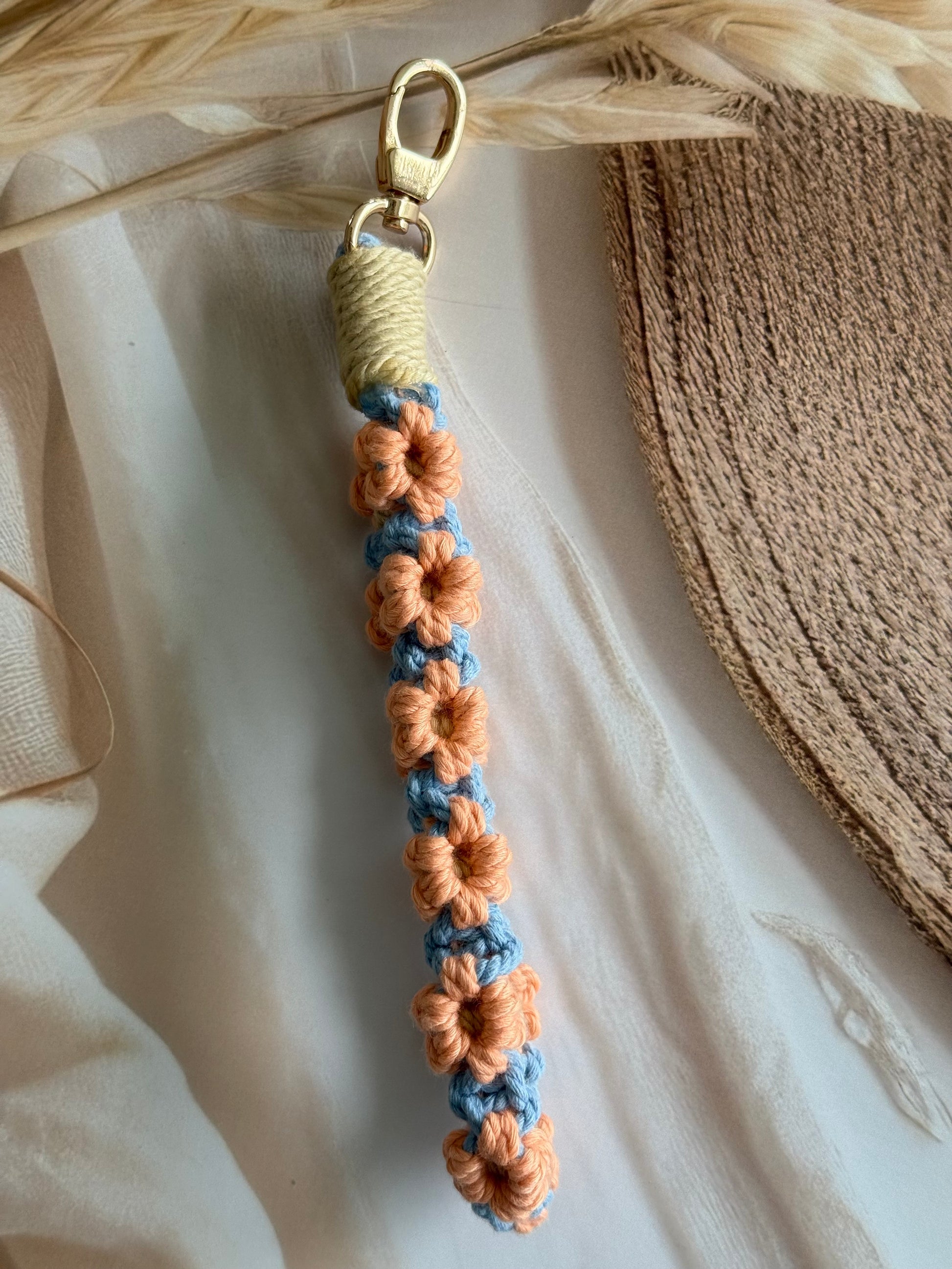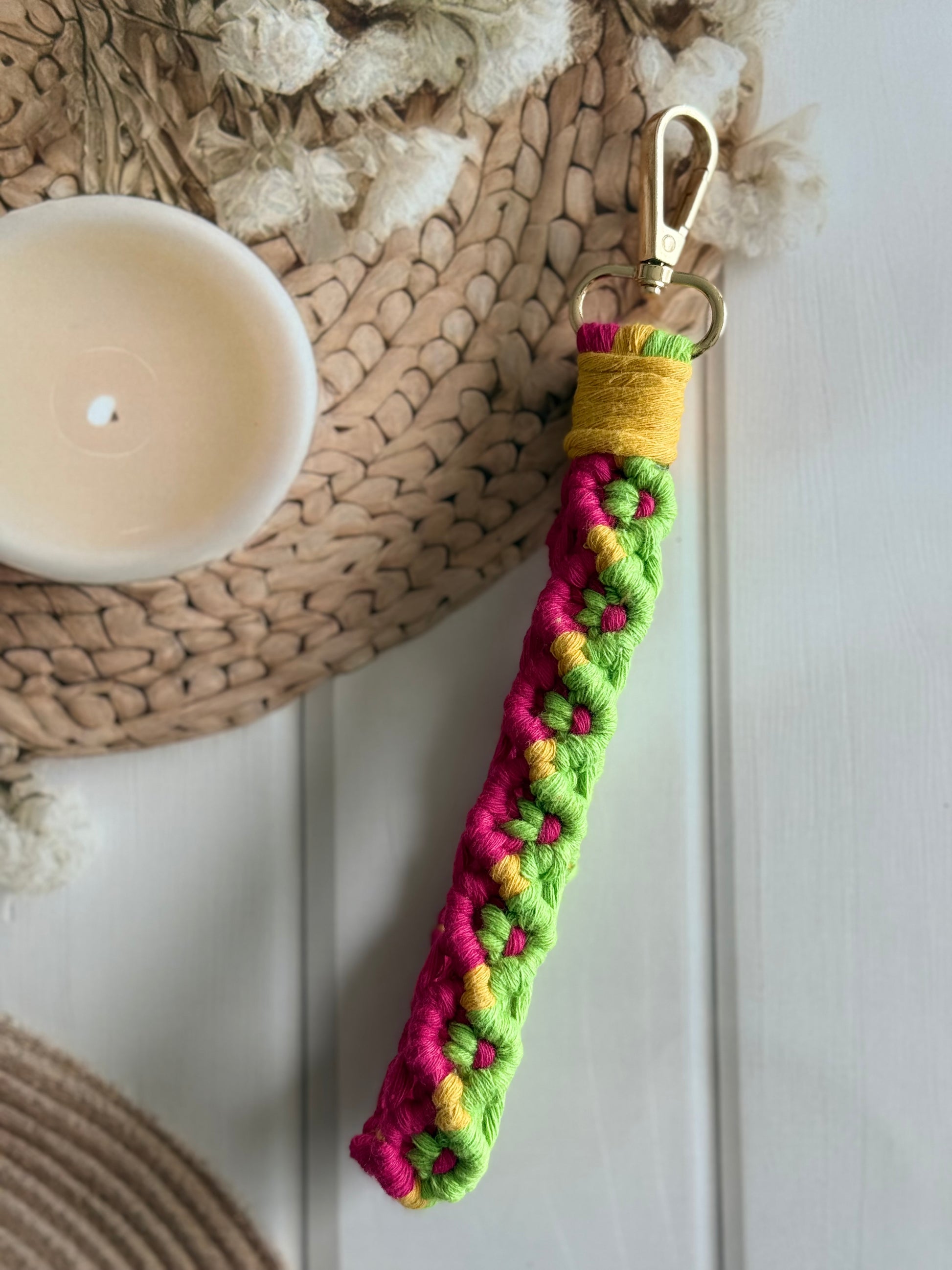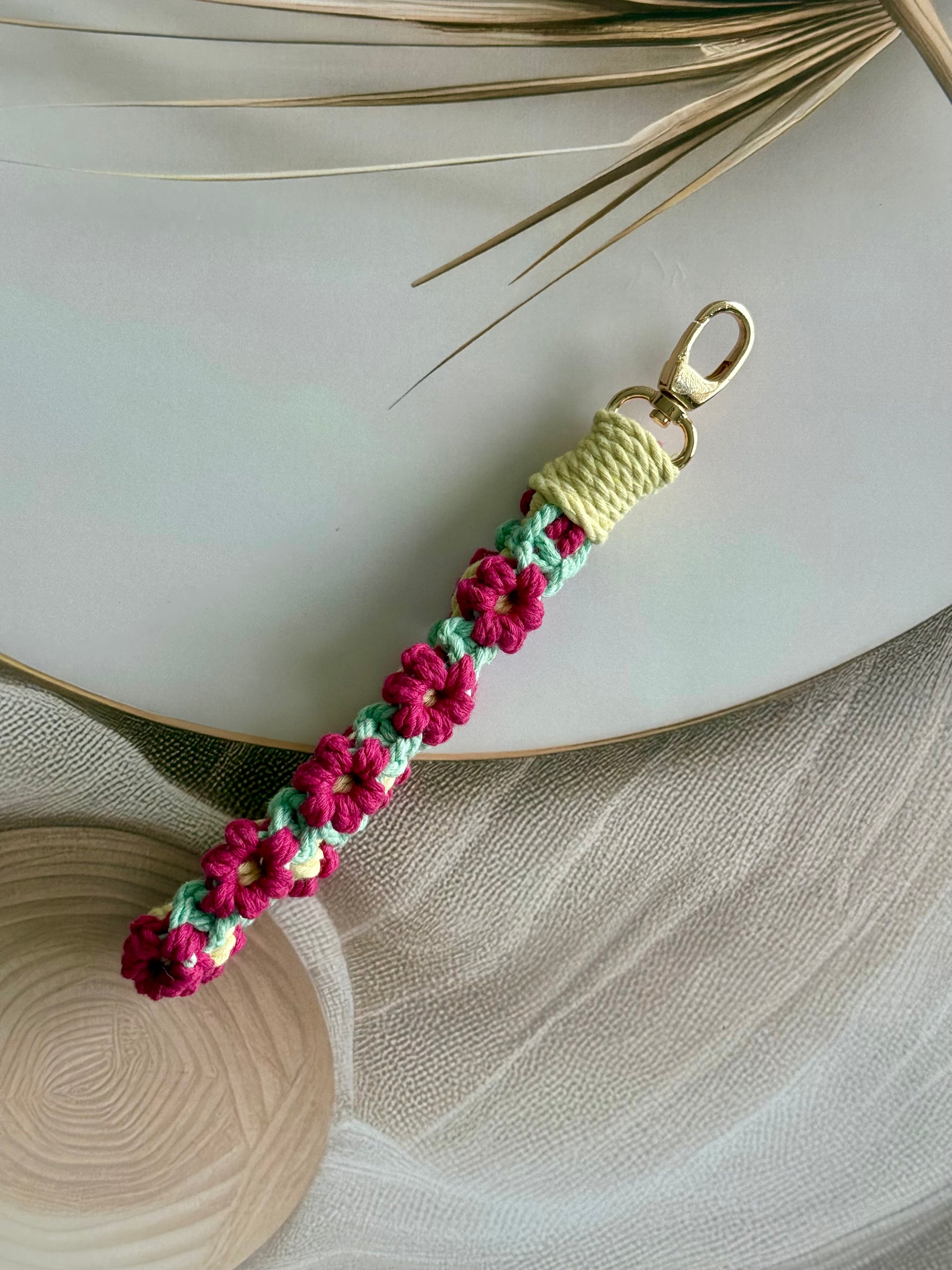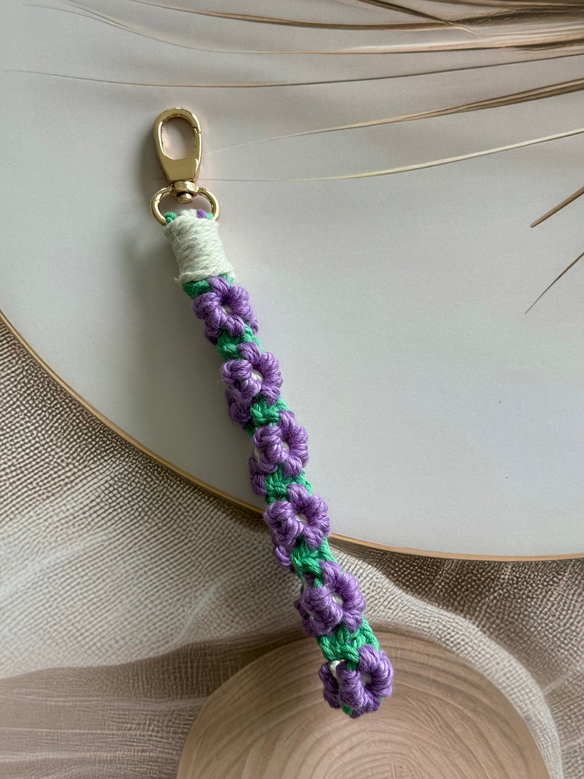 • Handcrafted wristlet made with detailed threadwork