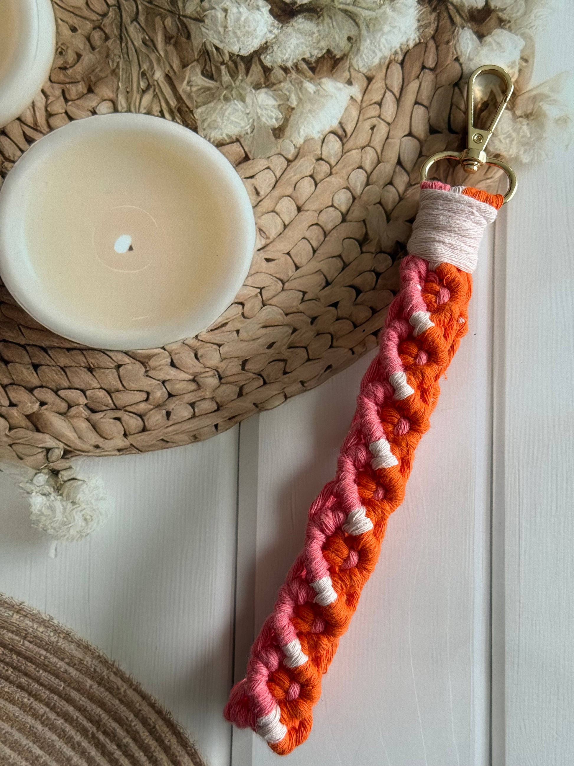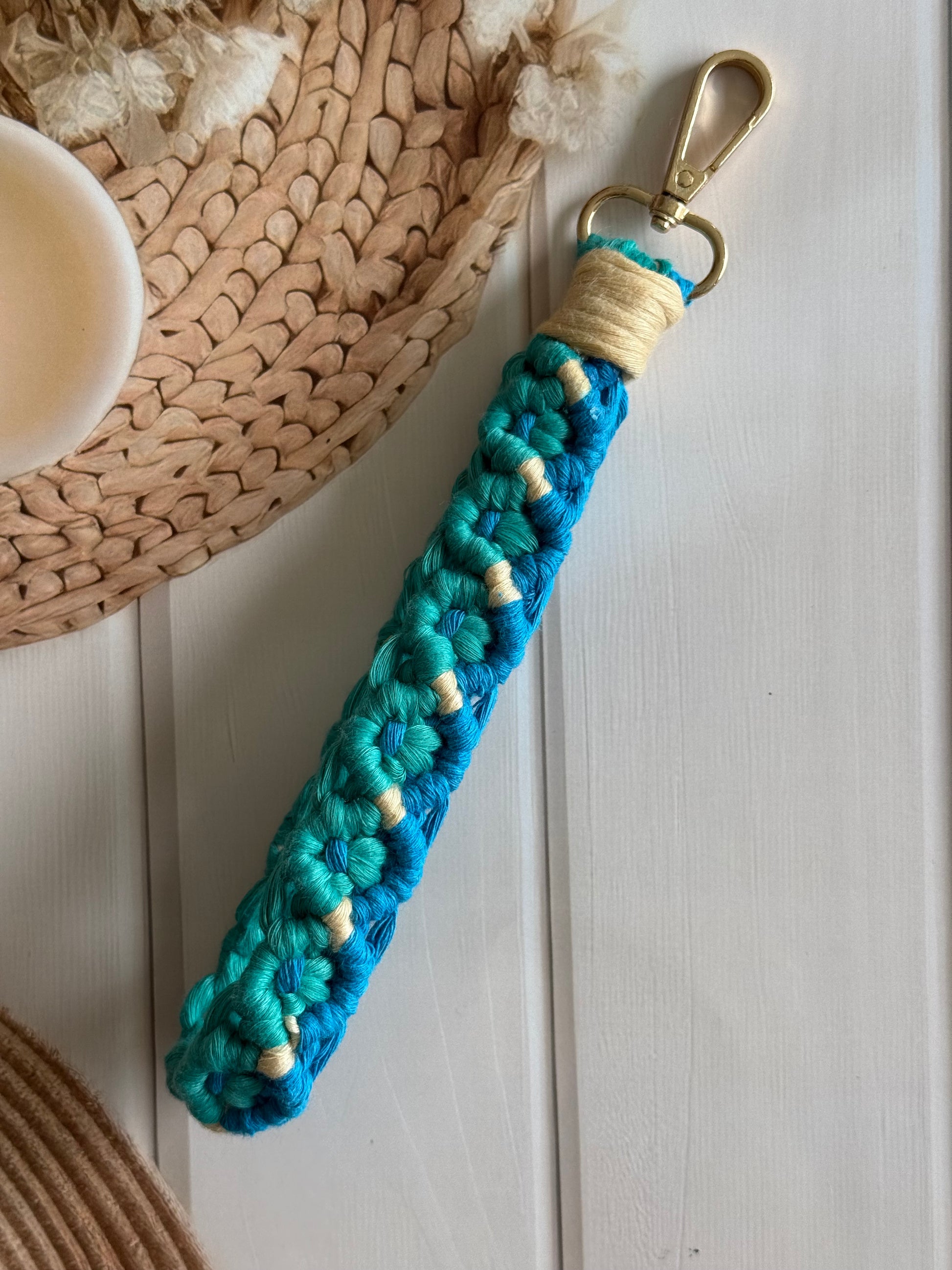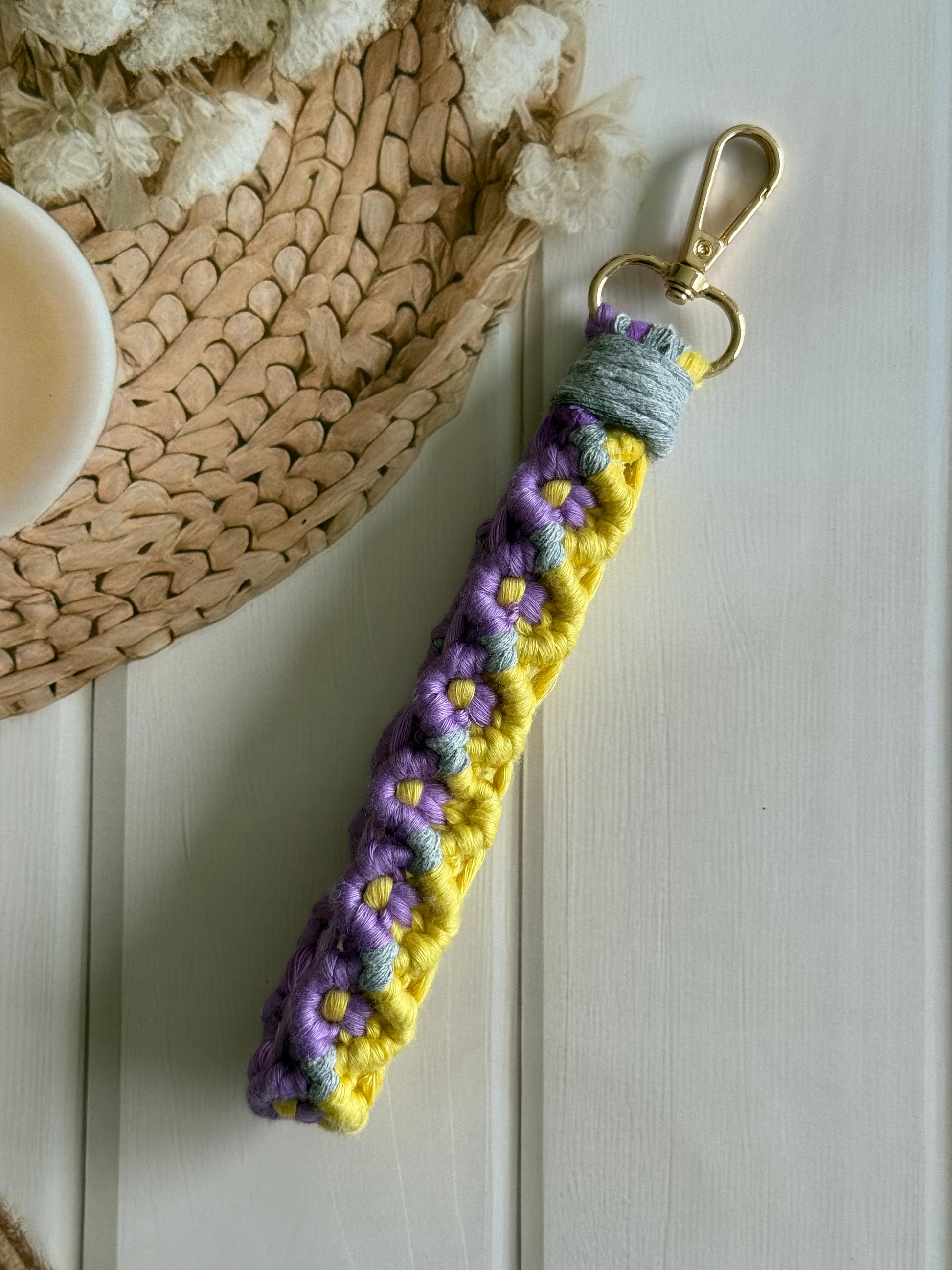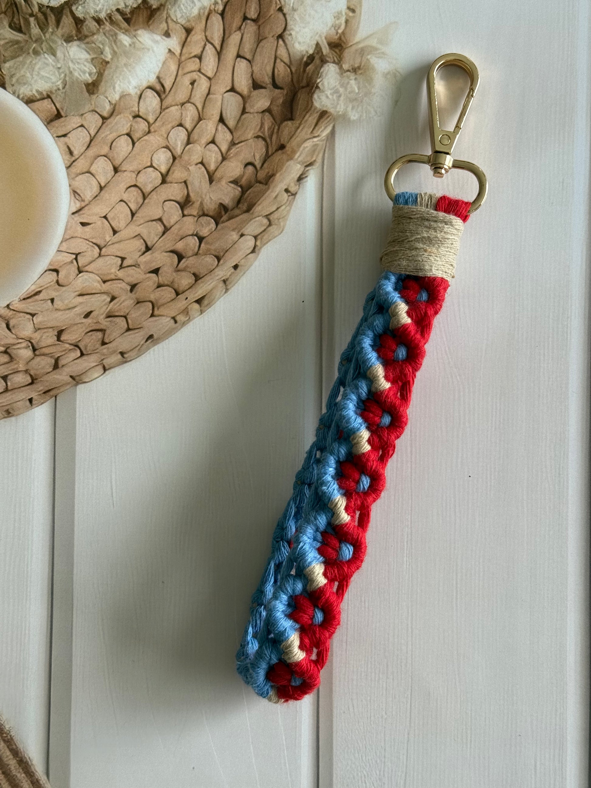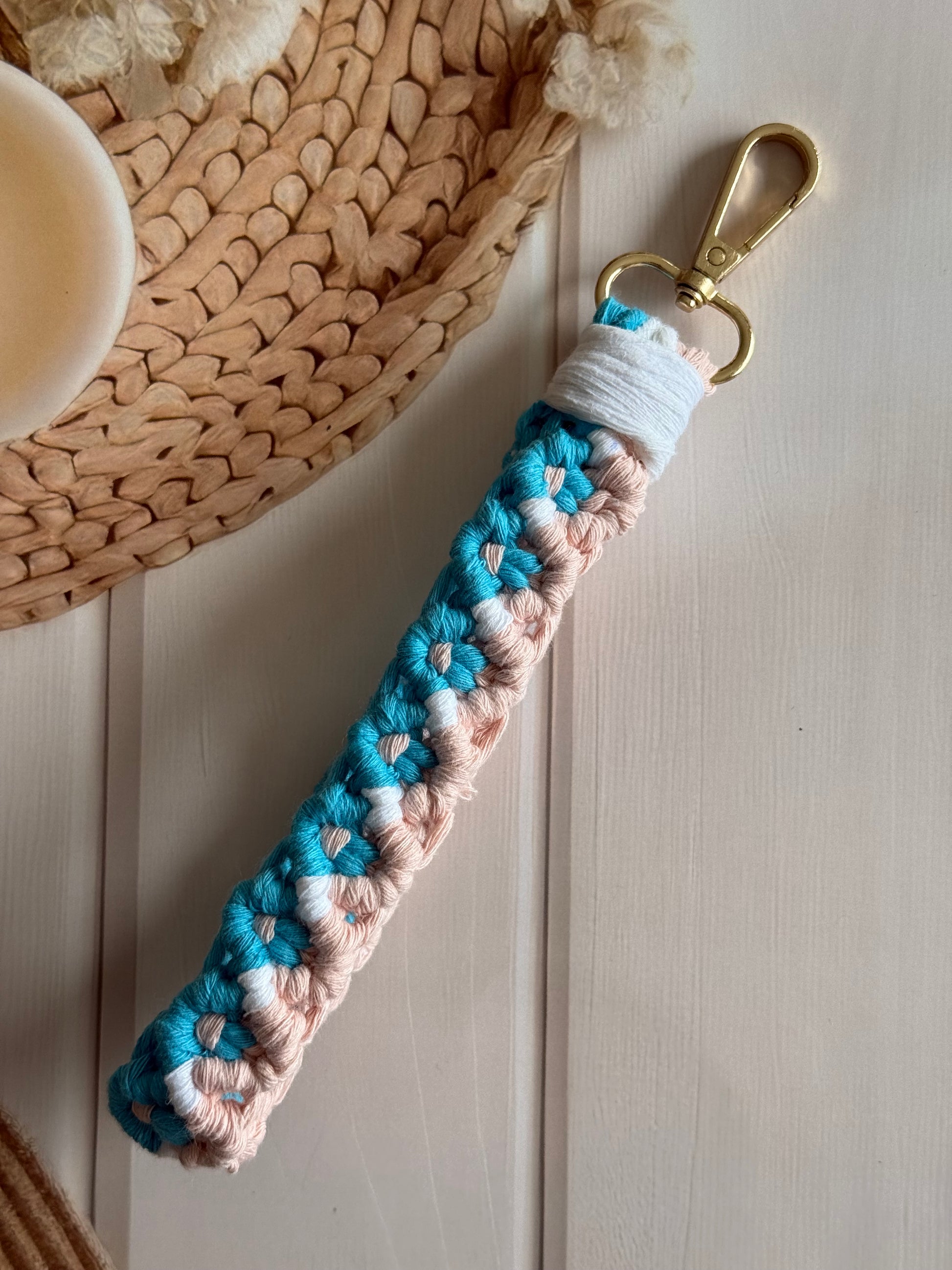 • Handcrafted wristlet made with detailed threadwork