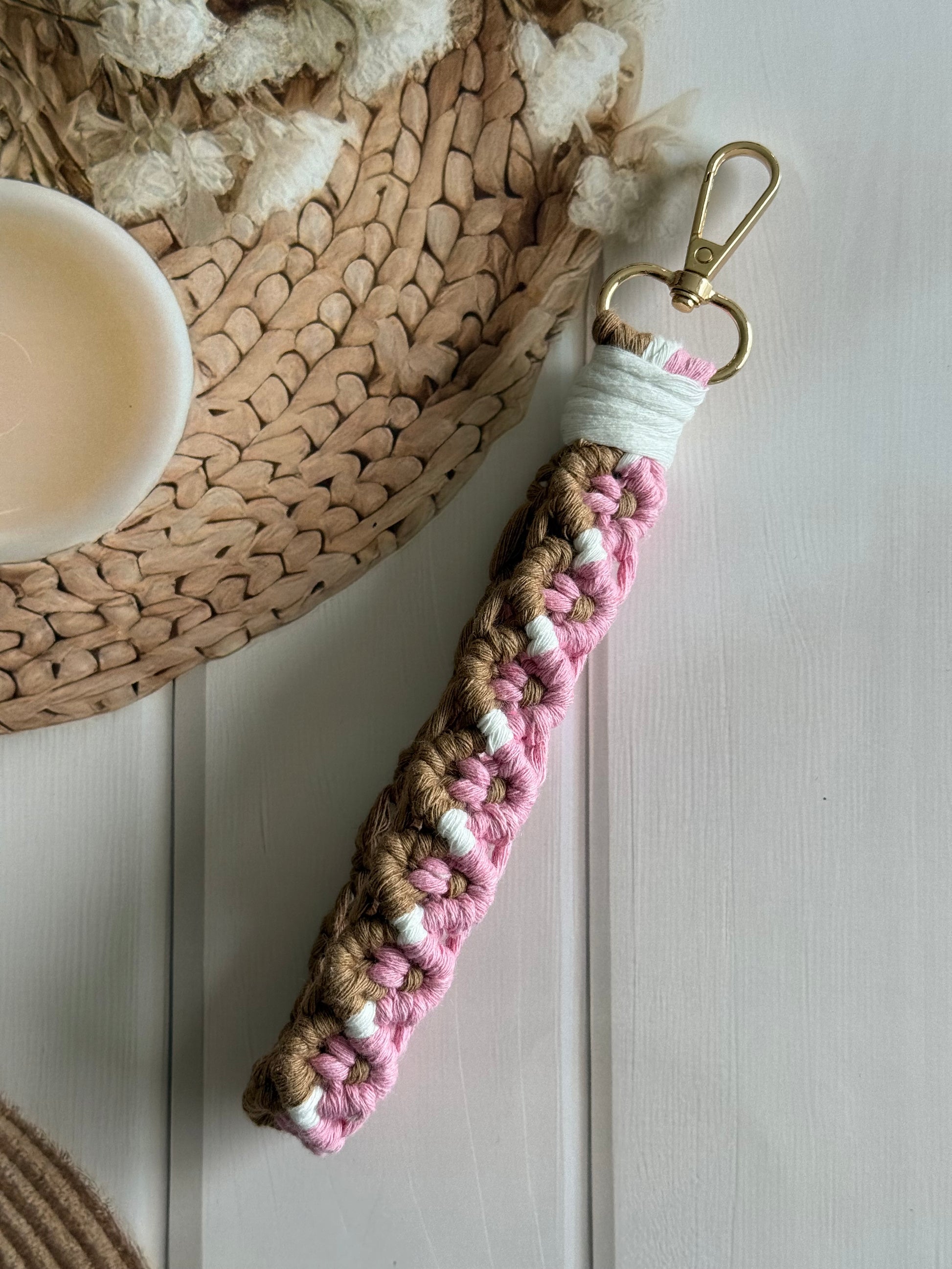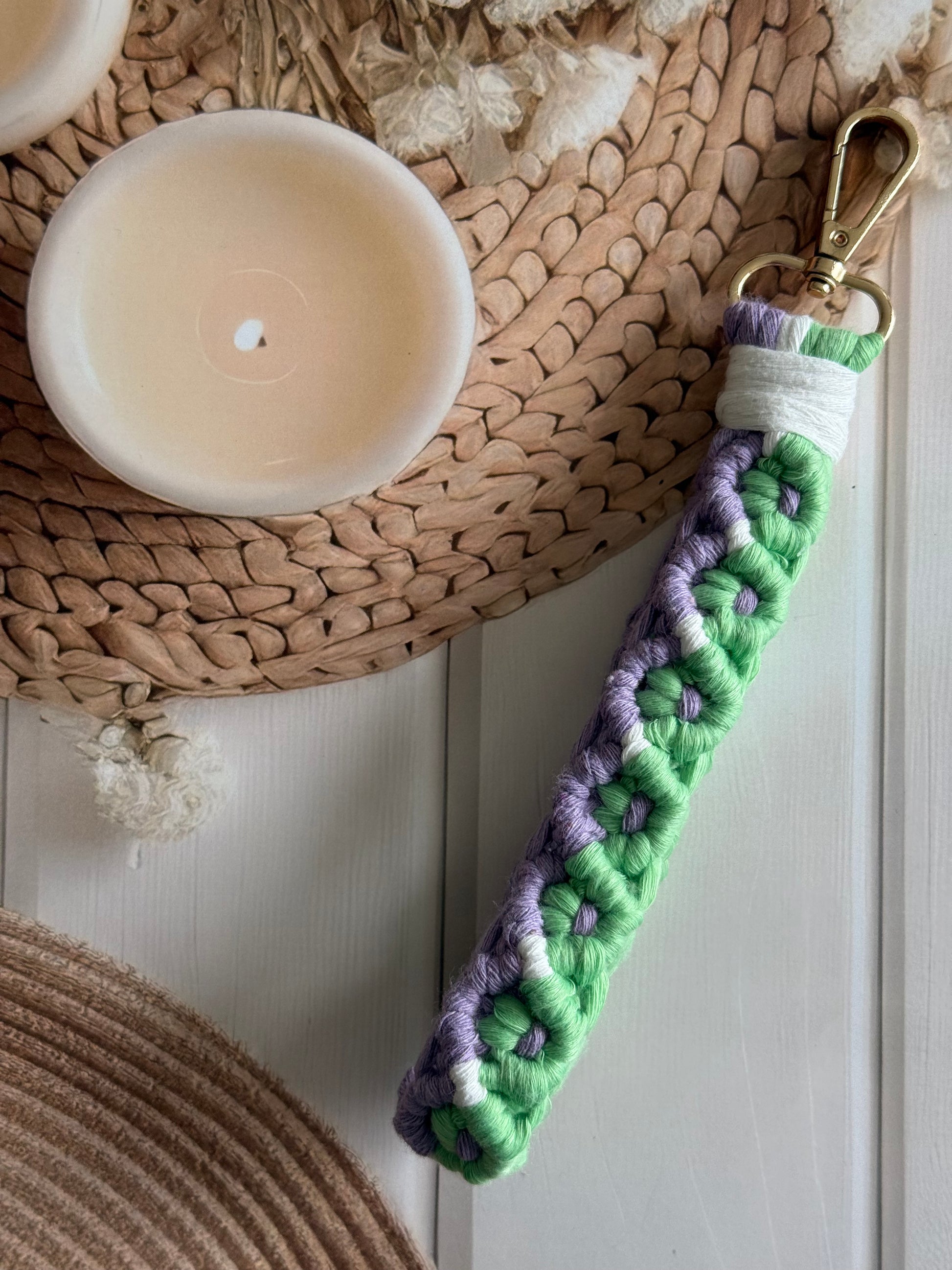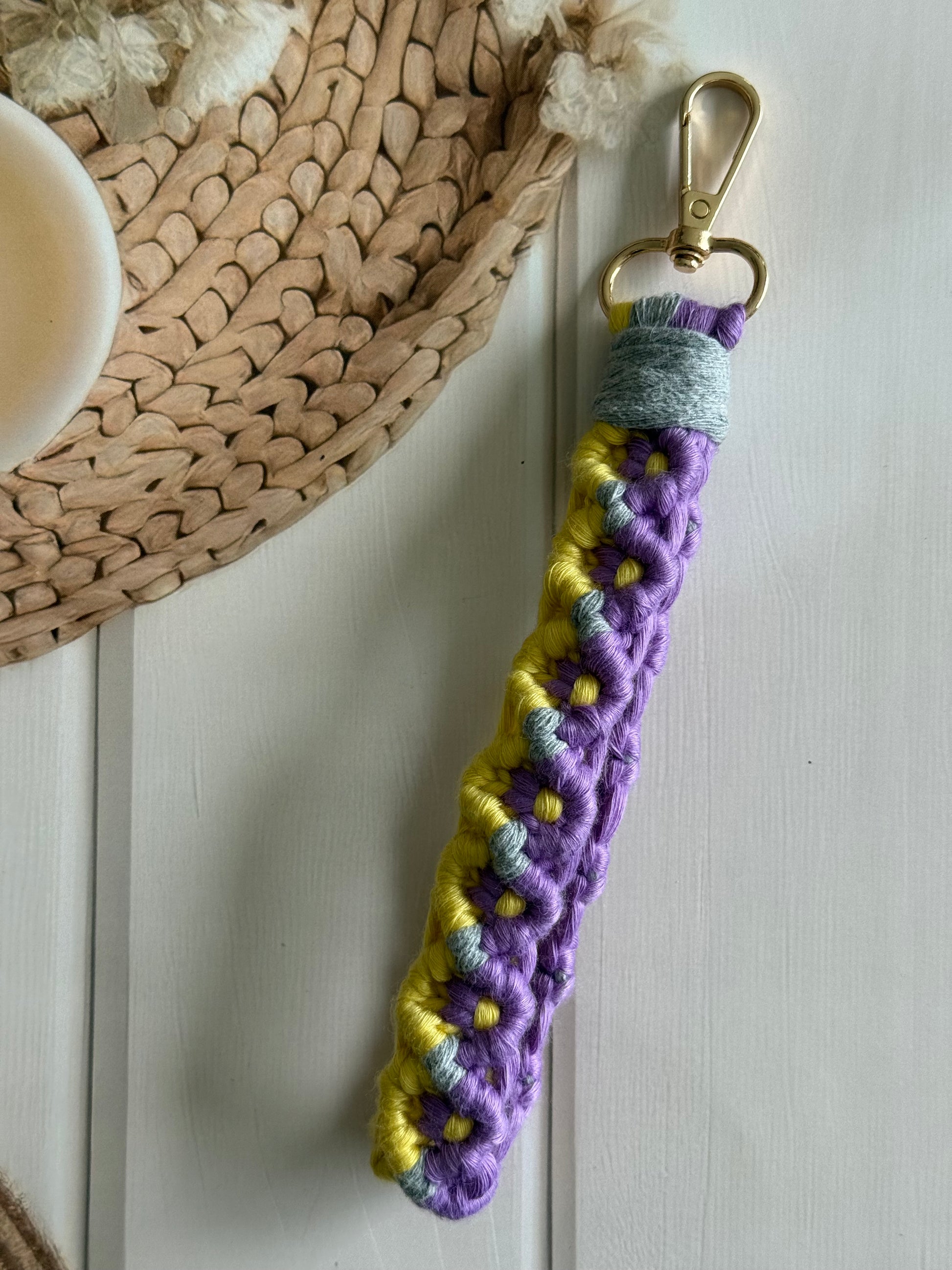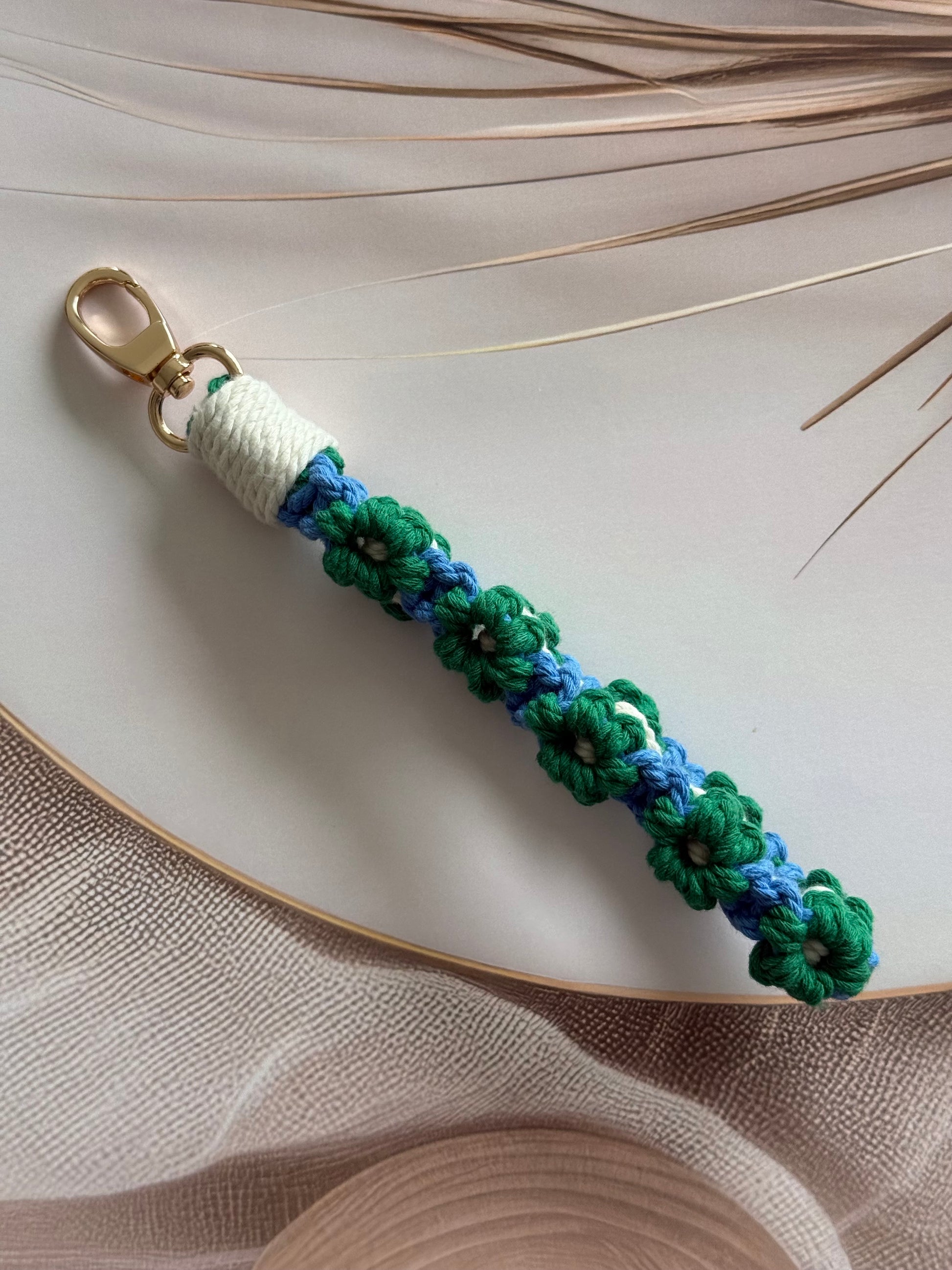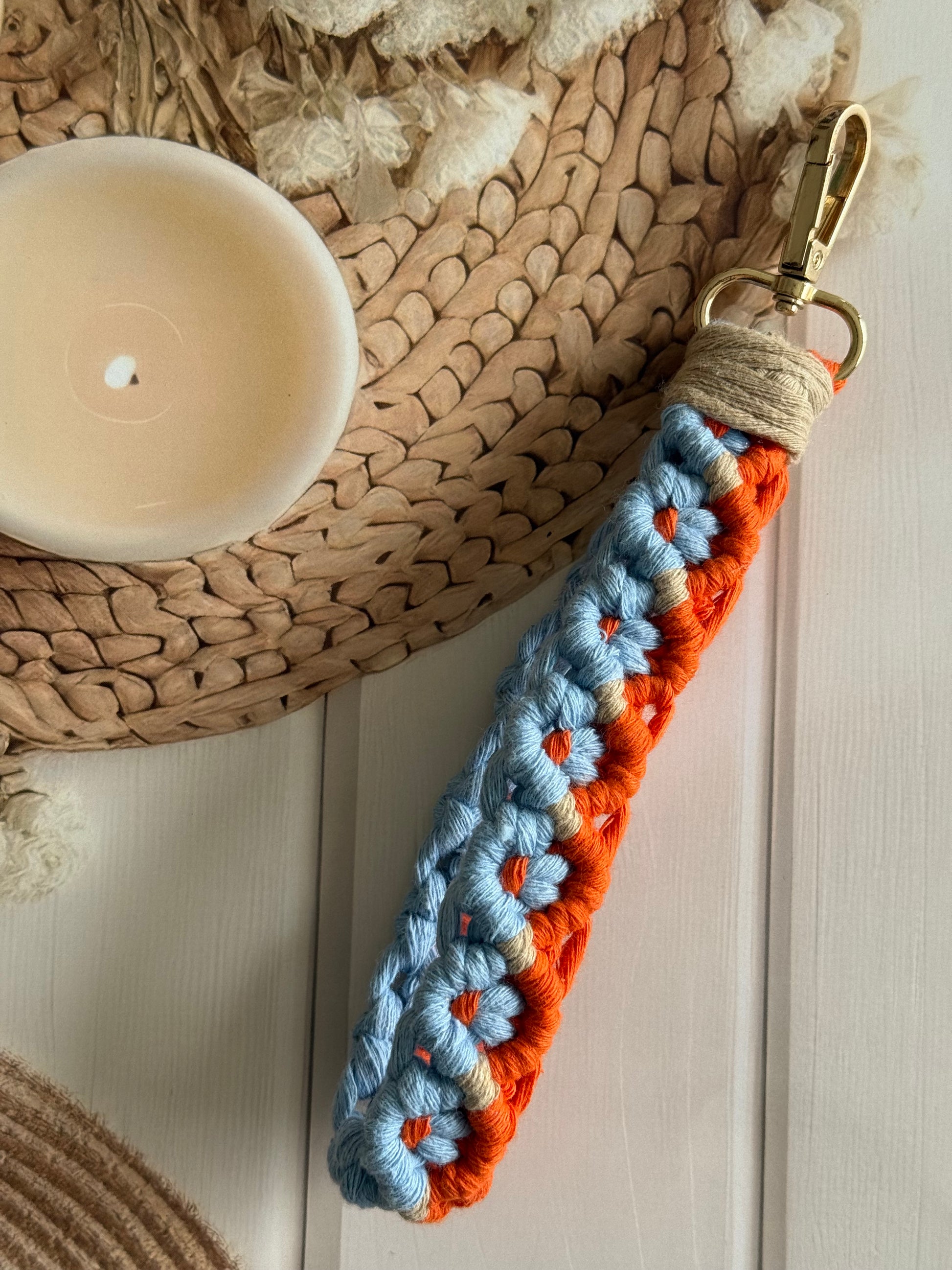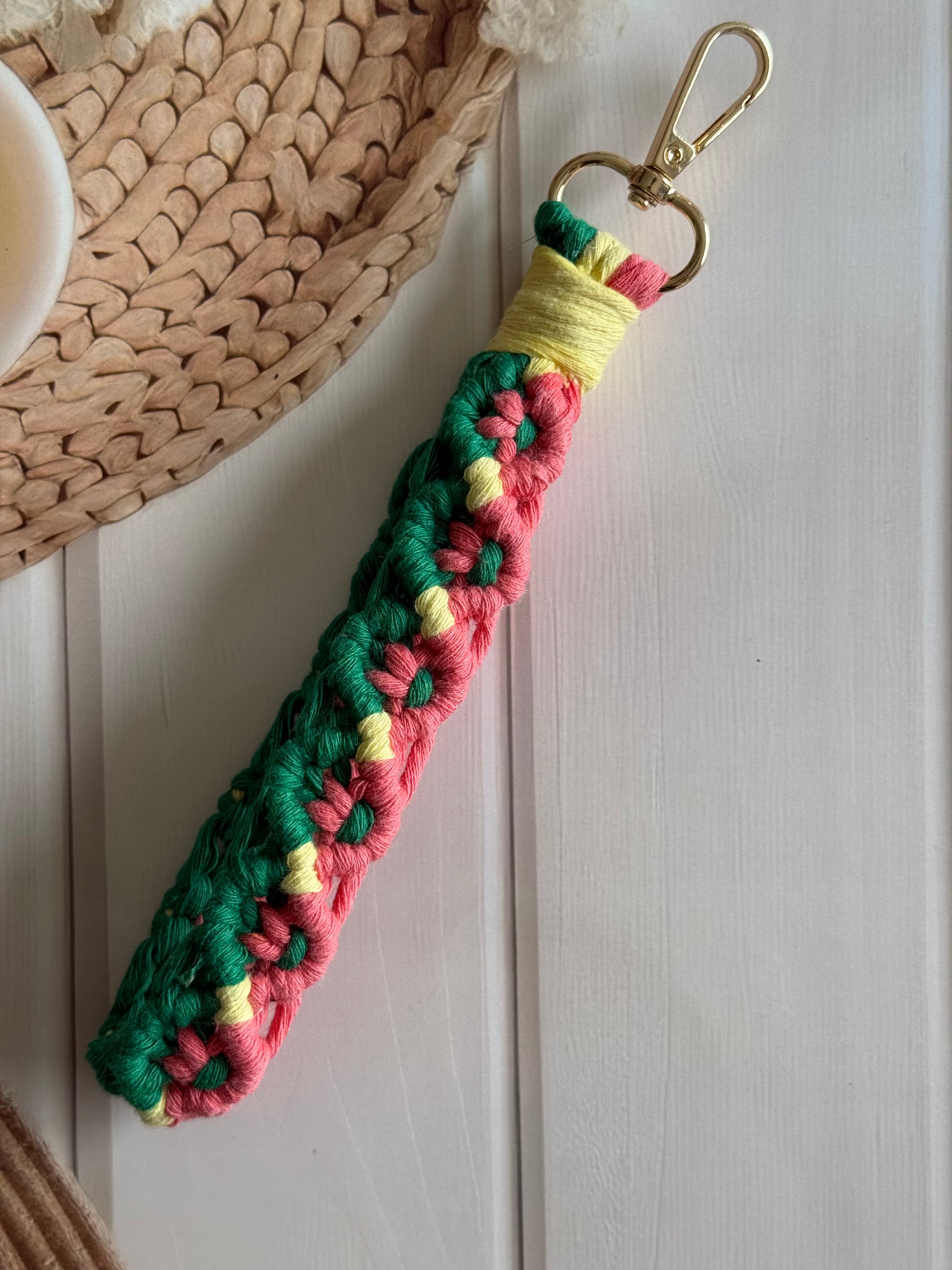 • Handcrafted wristlet made with detailed threadwork