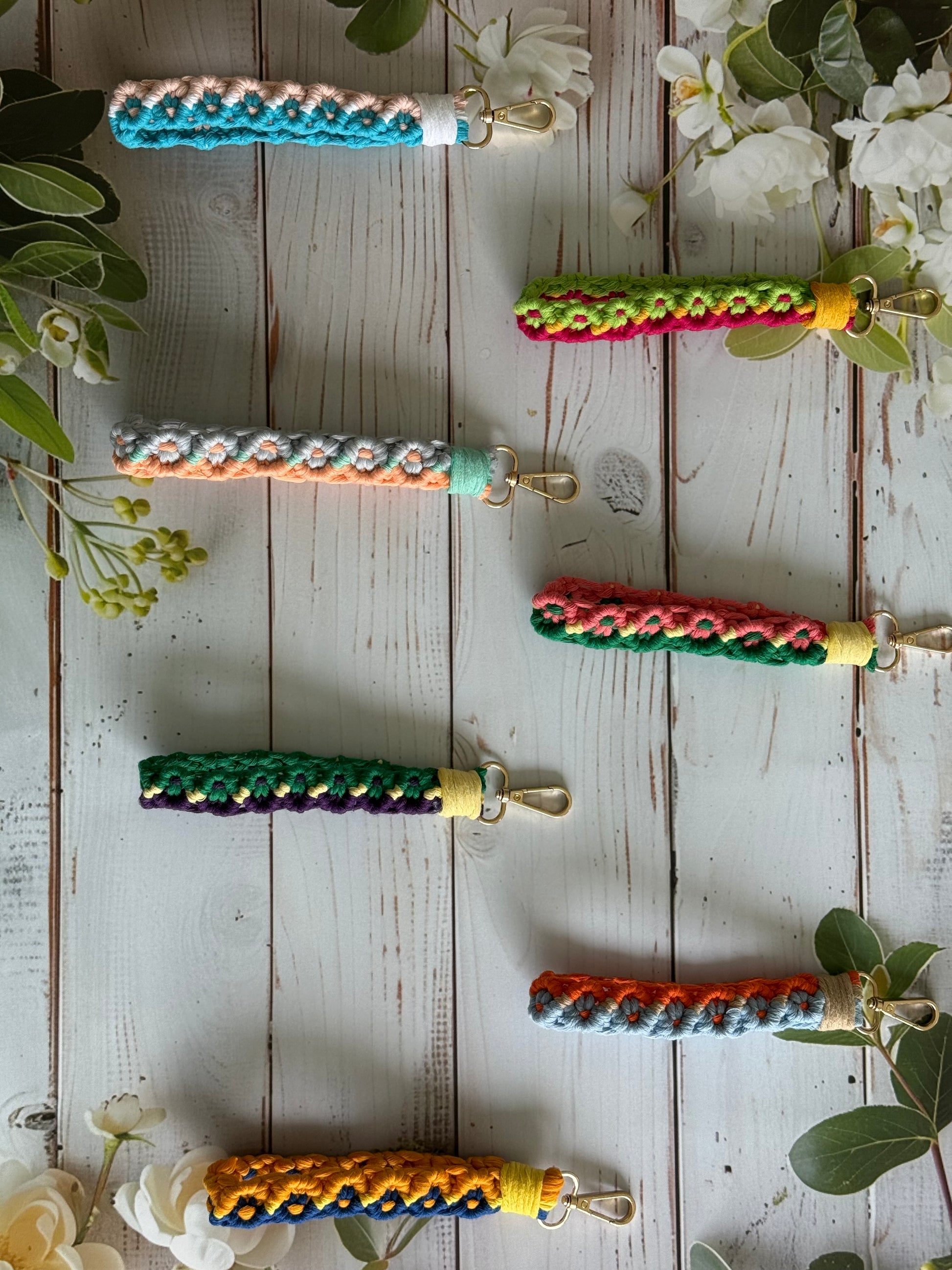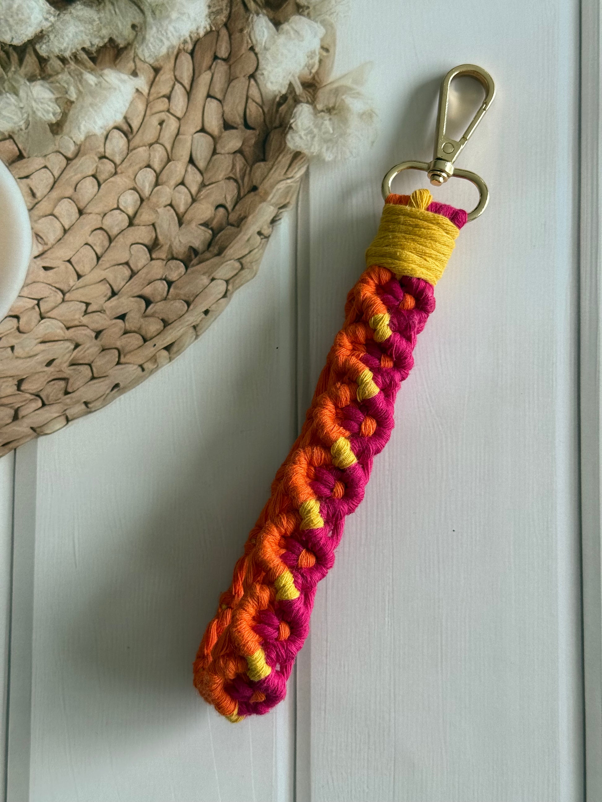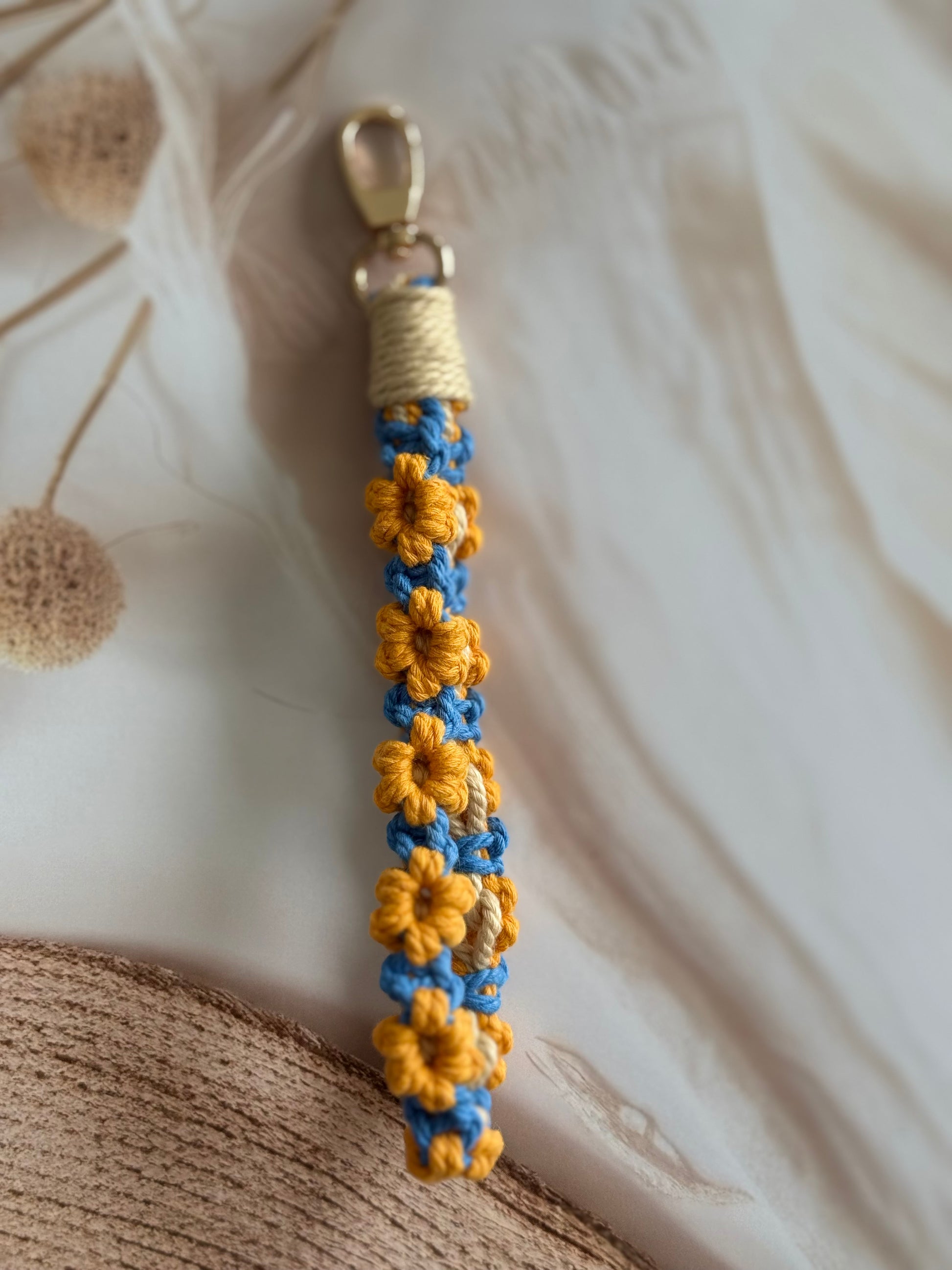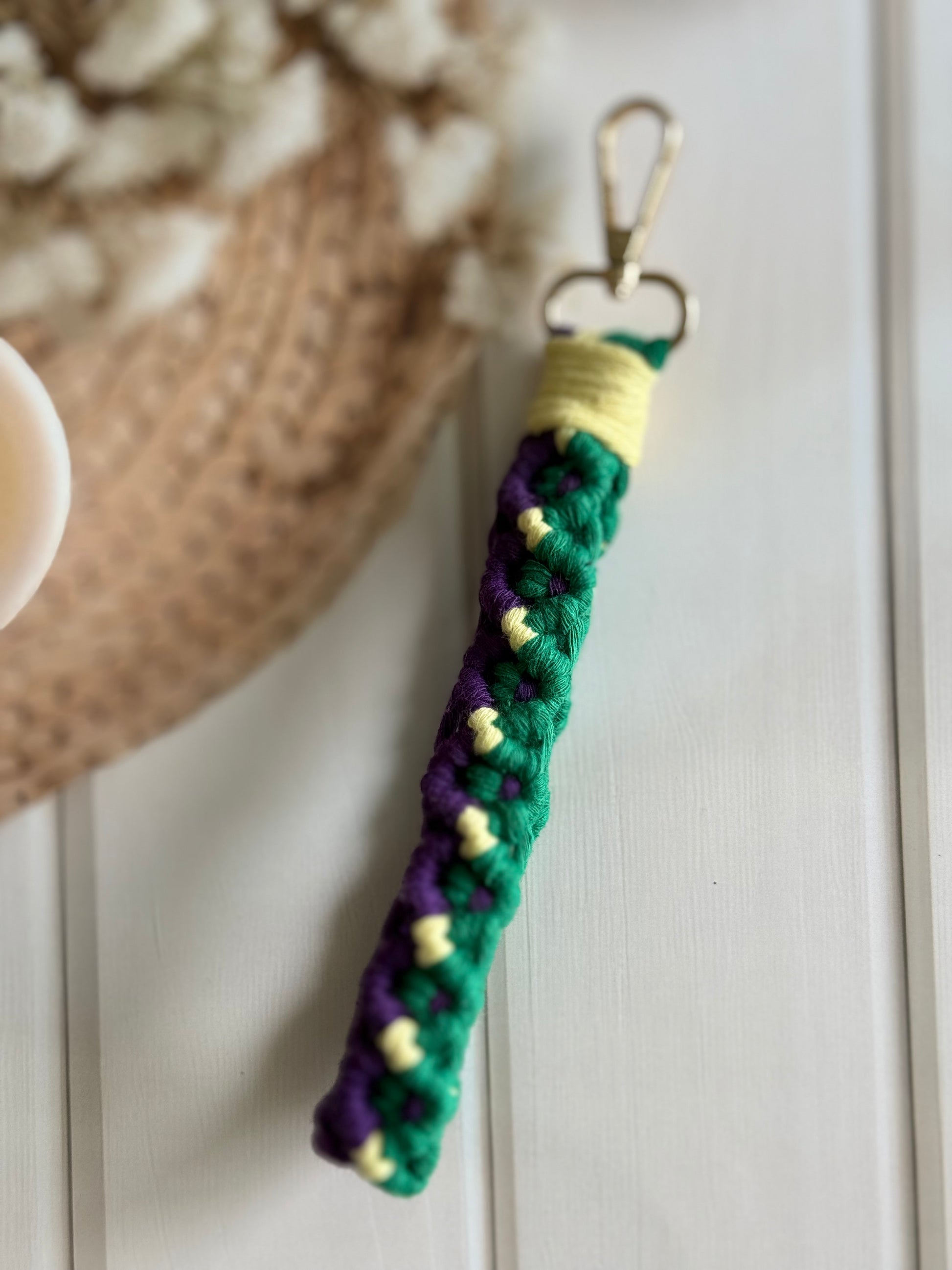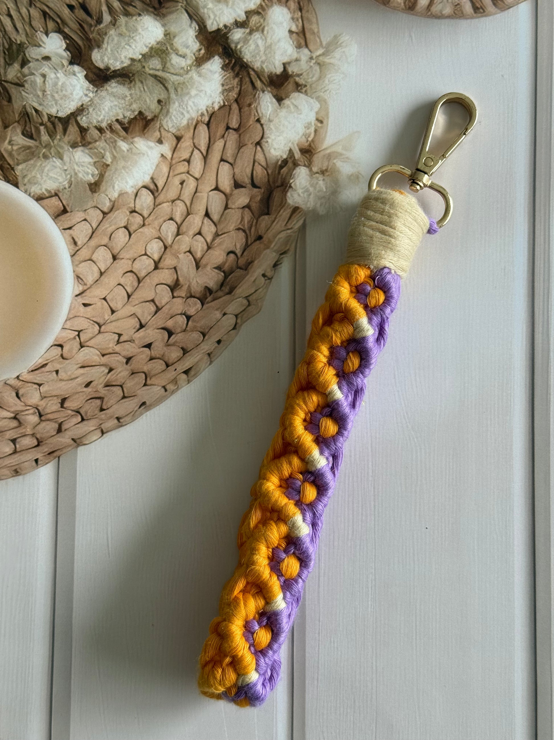 • Handcrafted wristlet made with detailed threadwork