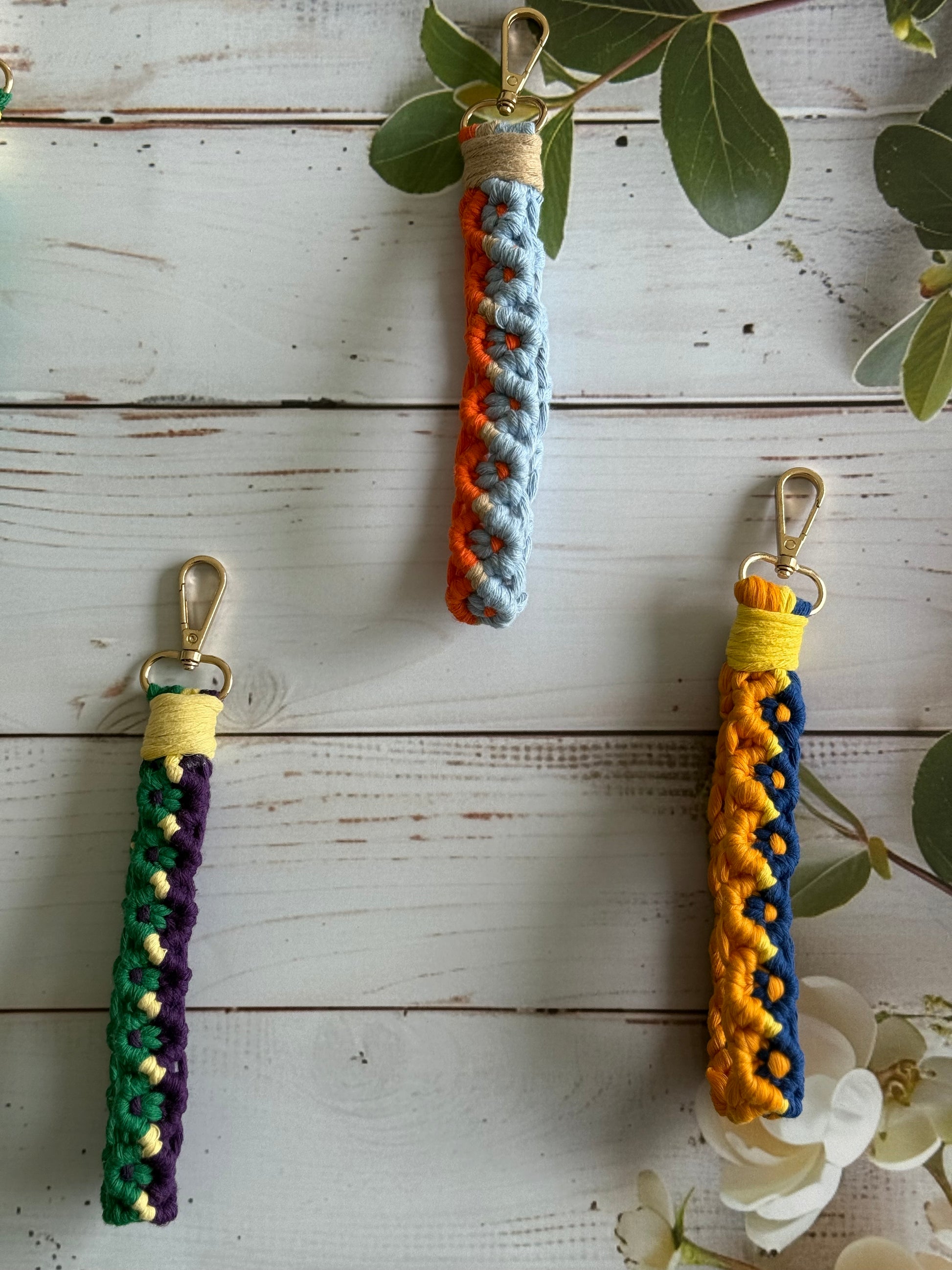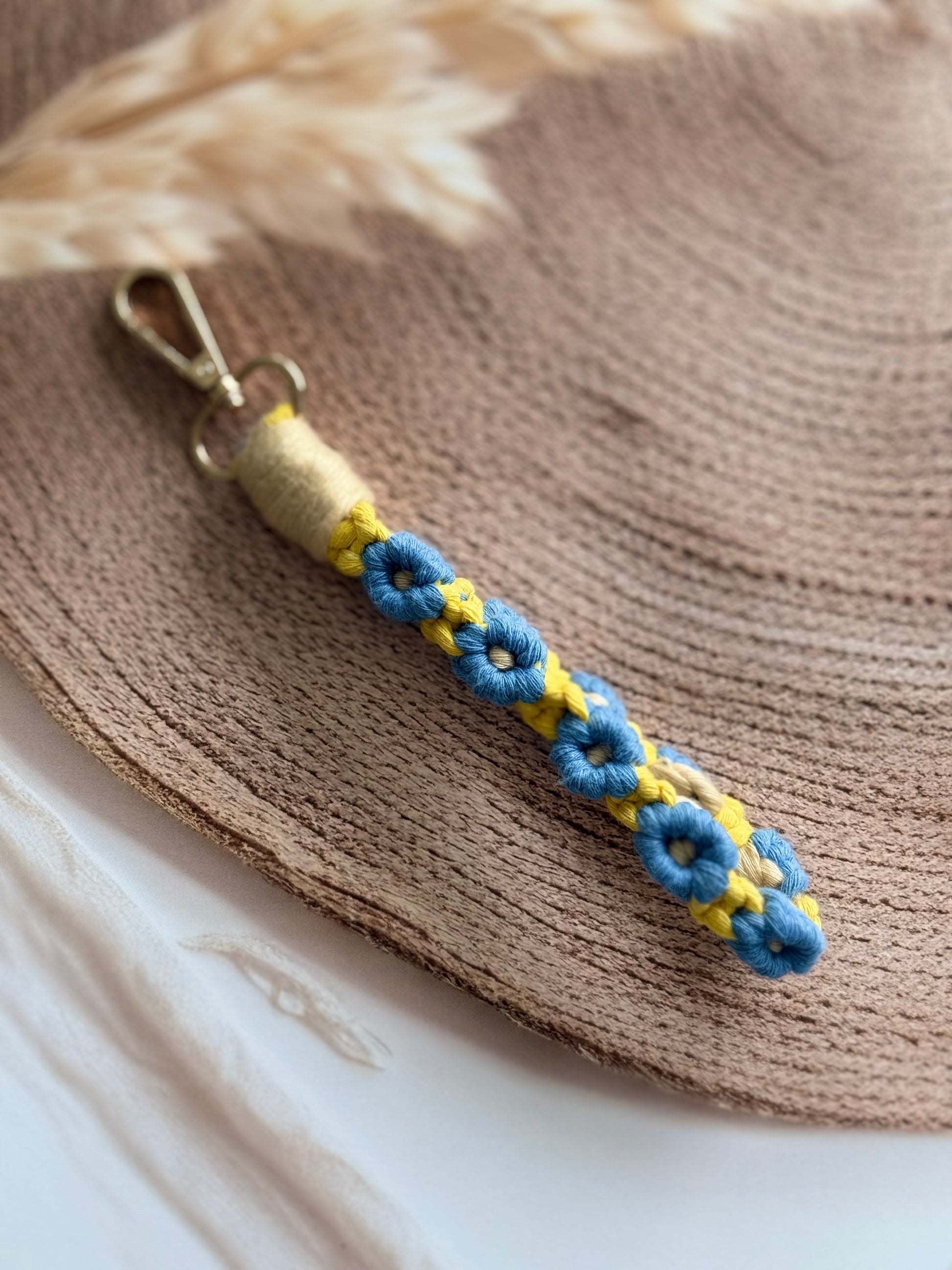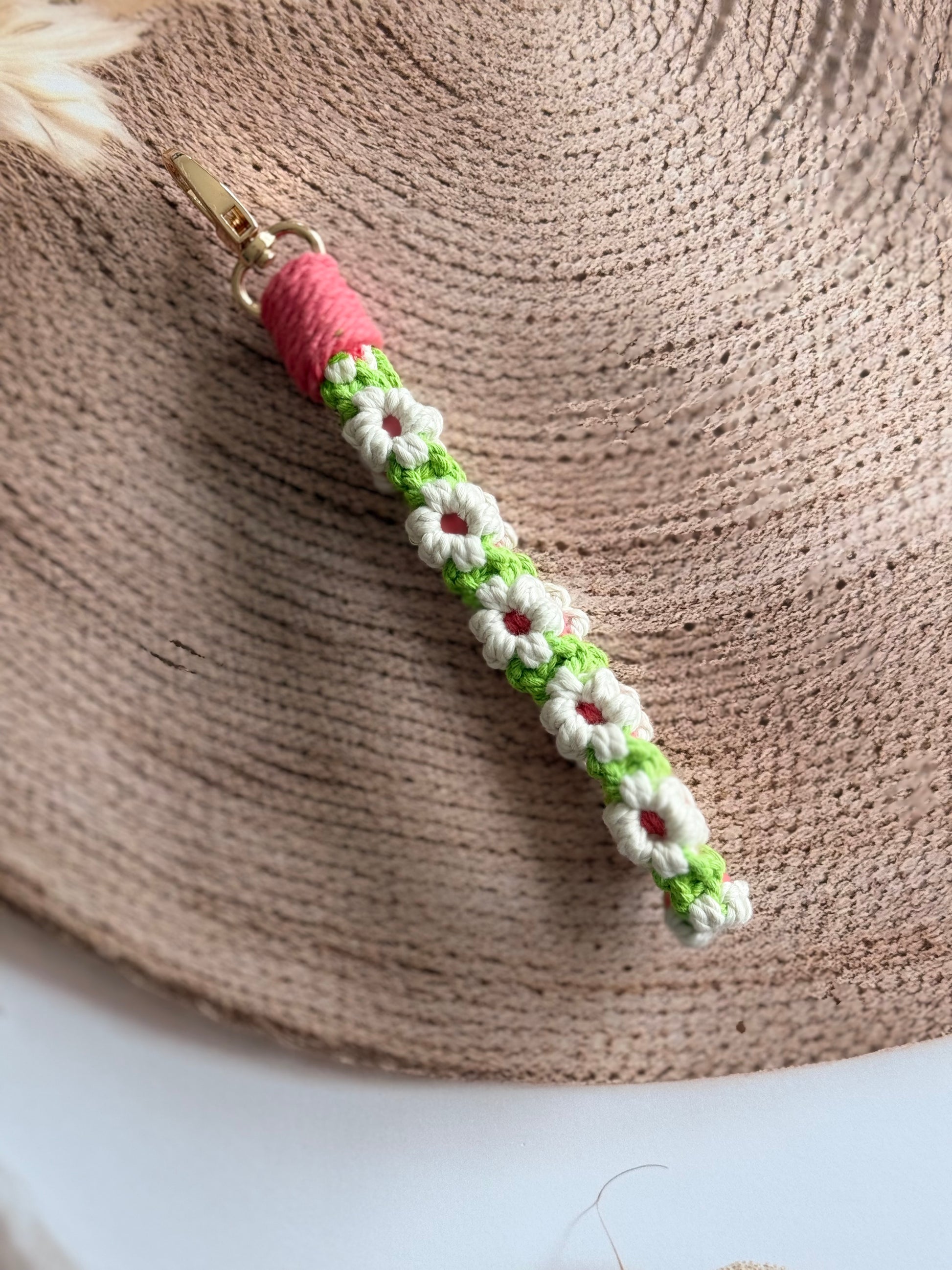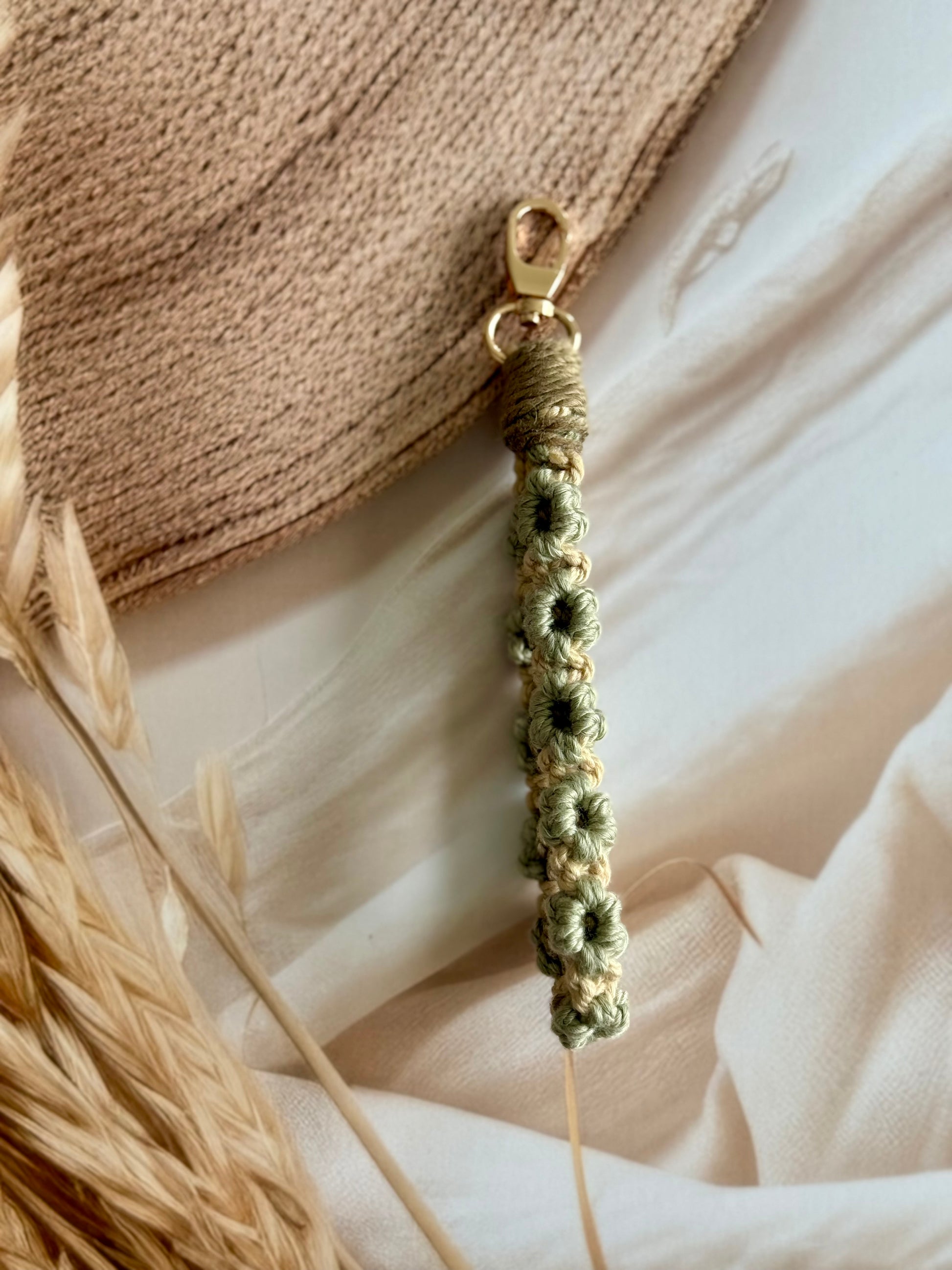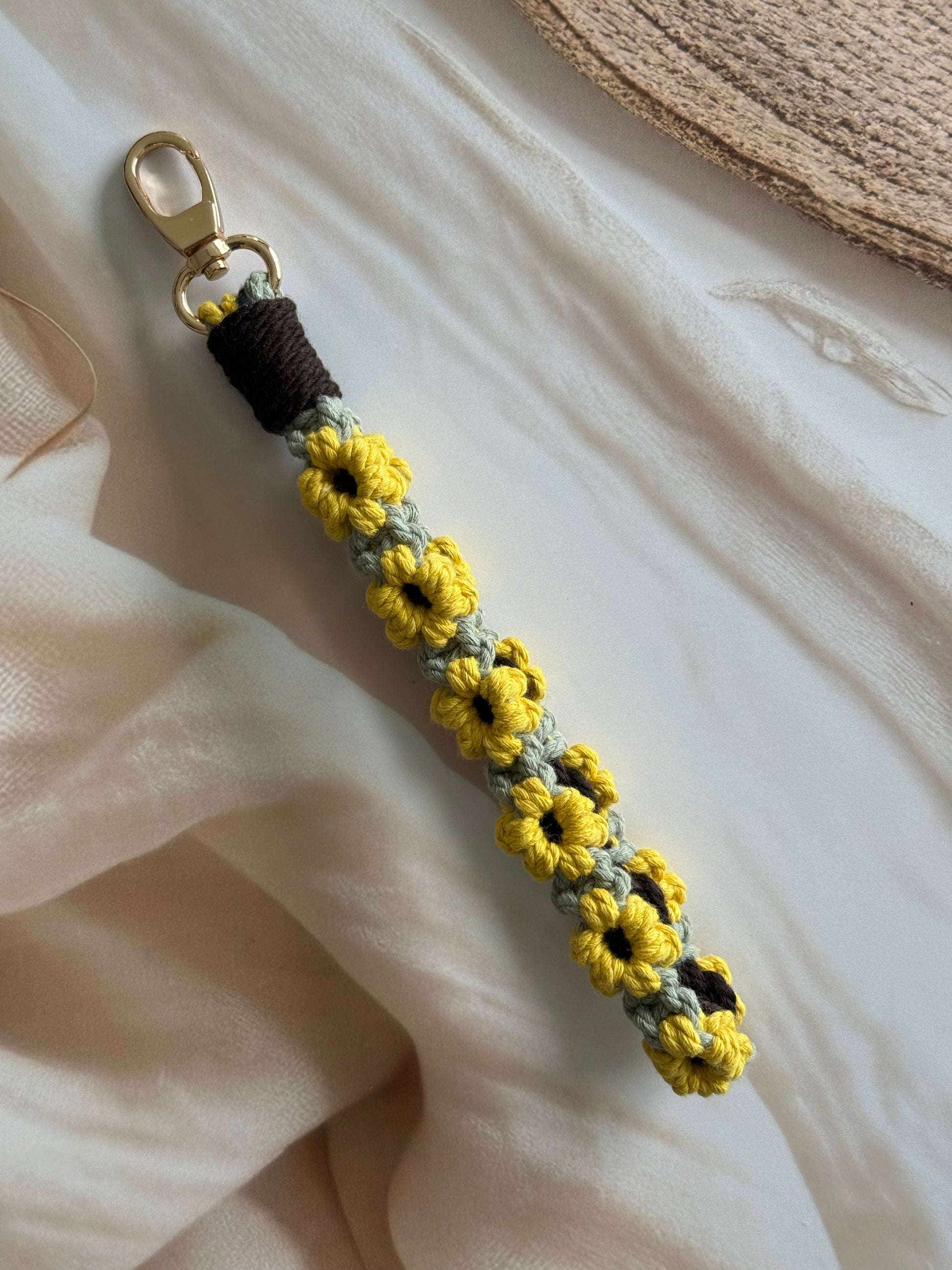 • Handcrafted wristlet made with detailed threadwork