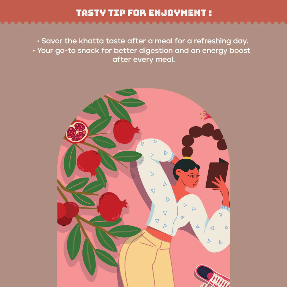 Relish the tangy burst of sun-dried pomegranate in every bite. A timeless treat for chatpata lovers.