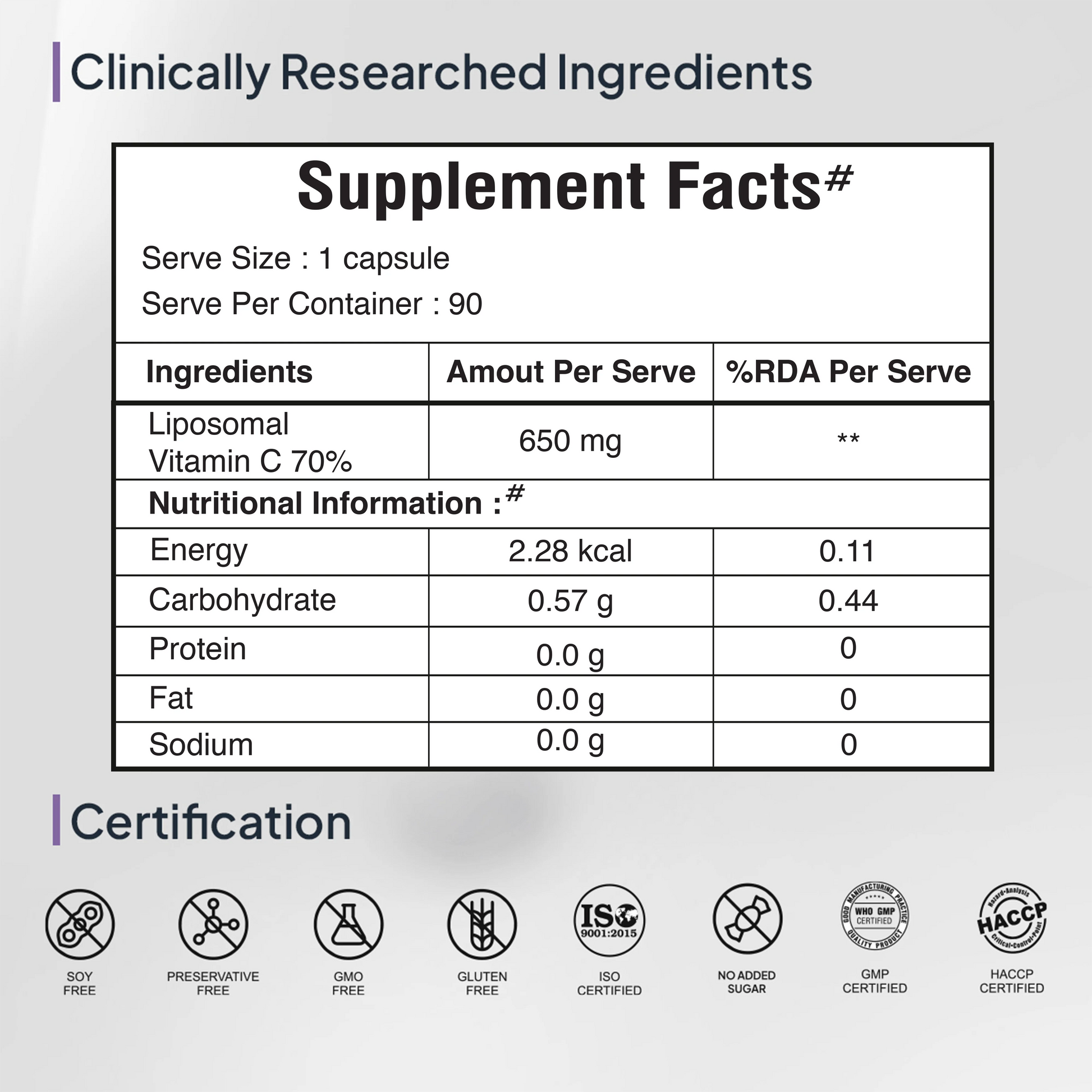 Miduty's Liposomal Vitamin C, with 70% Liposomal Vitamin C and enhanced by Liposomal Technology, offers 16X bioavailability for superior absorption.