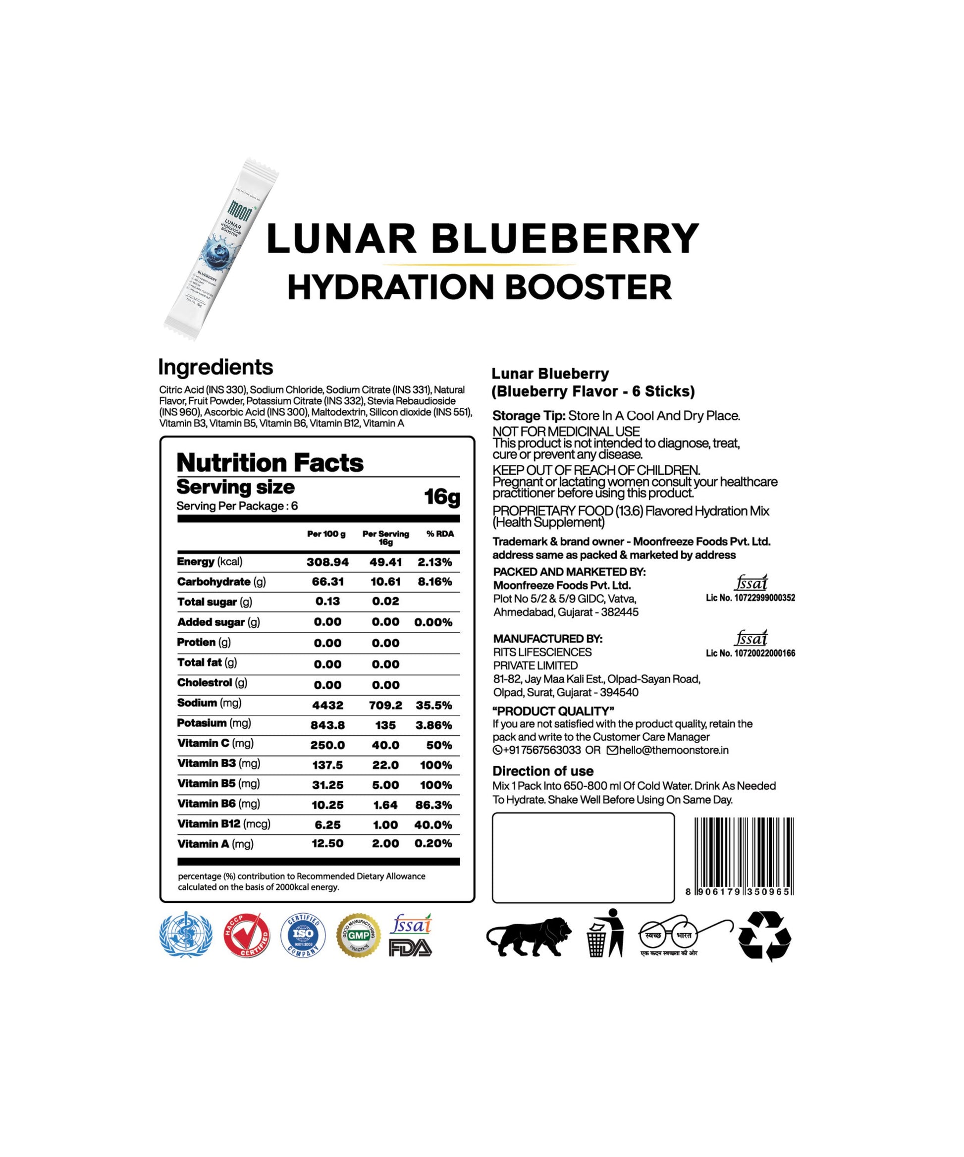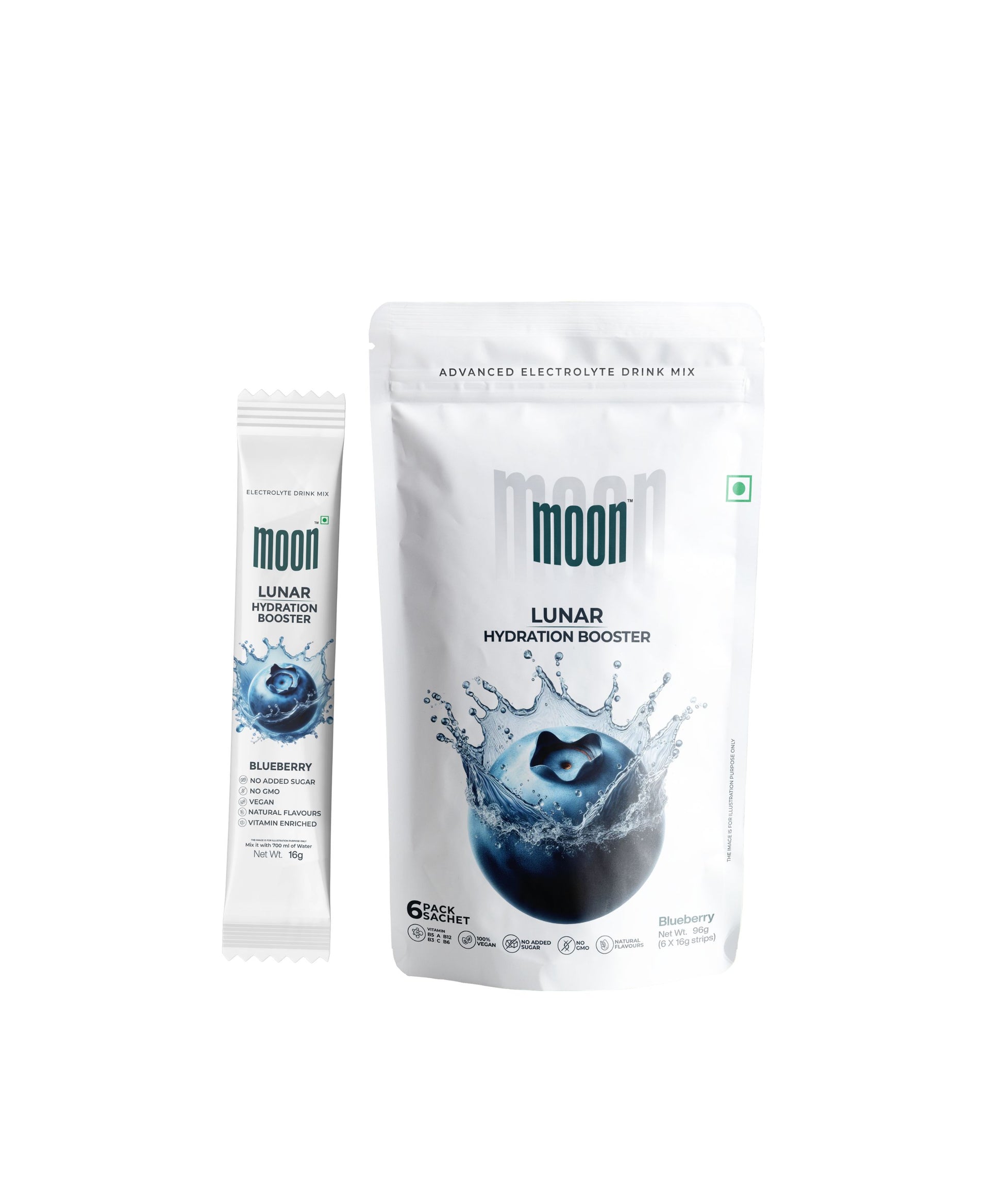 Lunar Blueberry Hydration Booster is a refreshing electrolyte drink mix designed to replenish, revitalize, and support performance. Infused with real blueberry flavour, essential electrolytes, and a powerful B-vitamin complex, it delivers deep hydration and sustained energy in a light, low-calorie format.