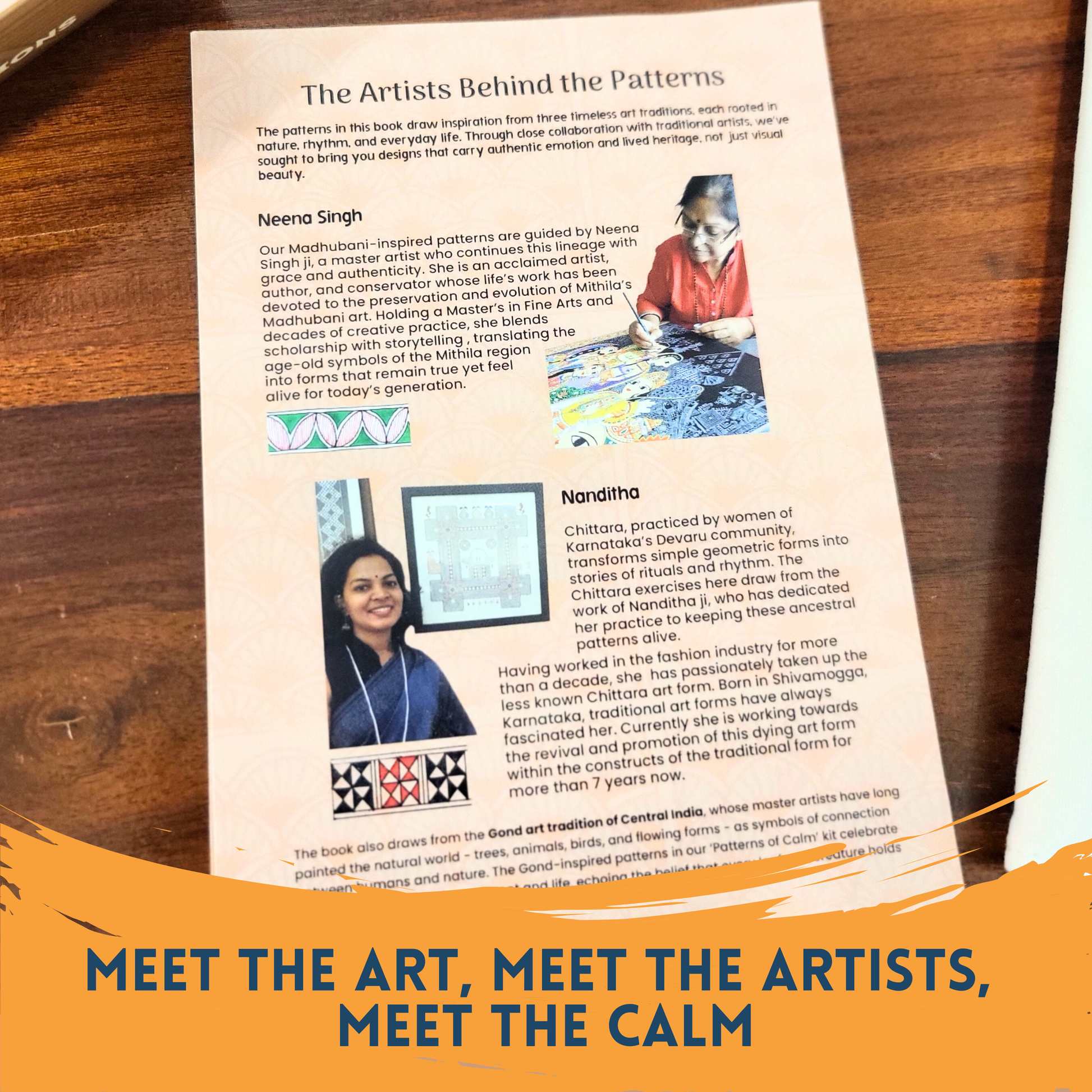 Patterns of Calm is a mindful art kit inspired by Indian folk patterns, designed to help you slow down, relax, and reconnect through soothing colouring and journaling. Rooted in traditions like Madhubani, Gond, and Chittara, it offers a gentle creative pause that blends culture, mindfulness, and everyday calm—perfect for personal unwinding or thoughtful gifting.