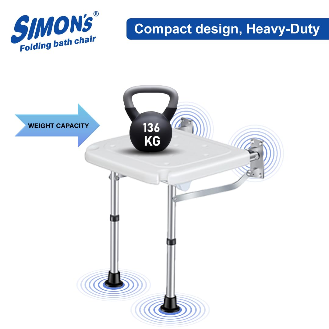 Simon's Folding Wall Bath Chair with Adjustable Legs