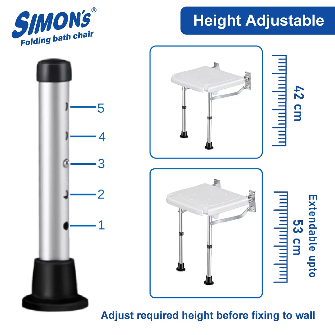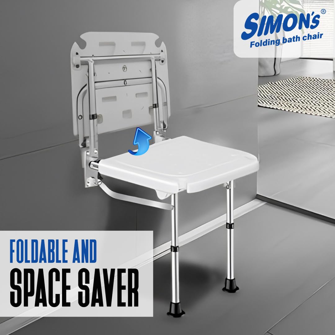 Simon’s Folding Wall Bath Chair with Adjustable Legs for Elderly to sit and take Bath in Bathroom, Shower Bench for Senior Citizens and Disabled